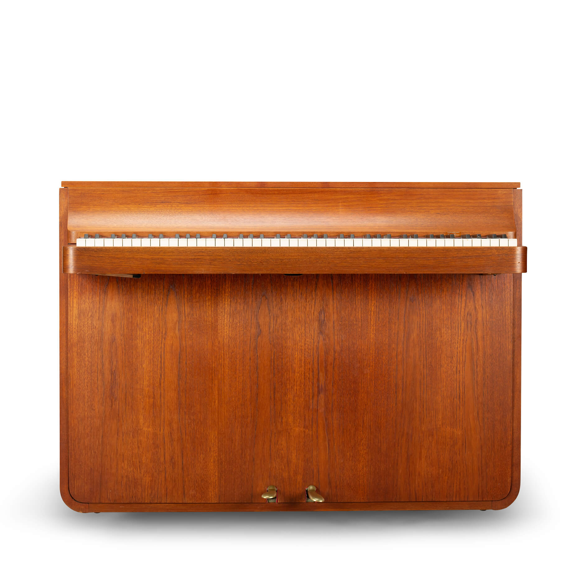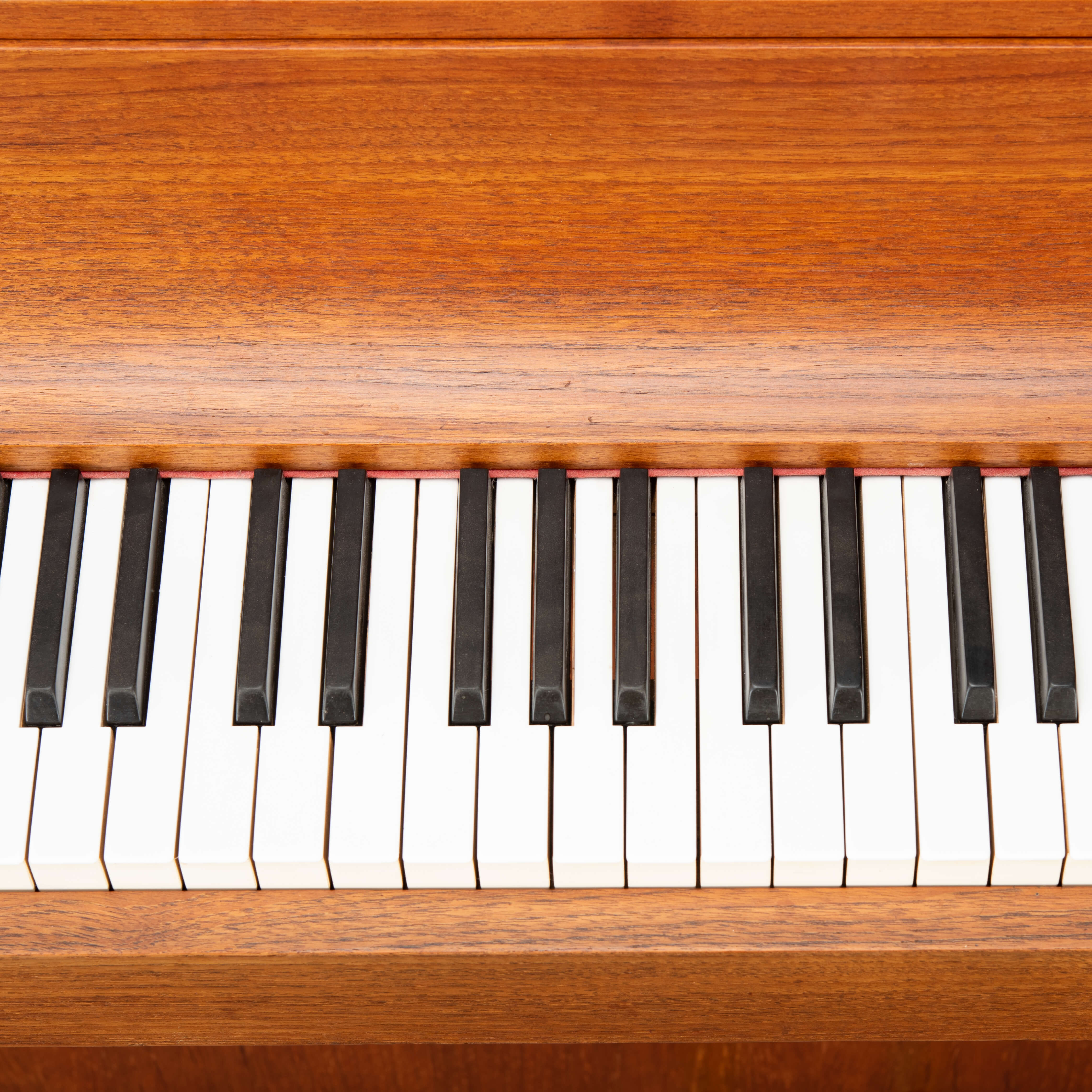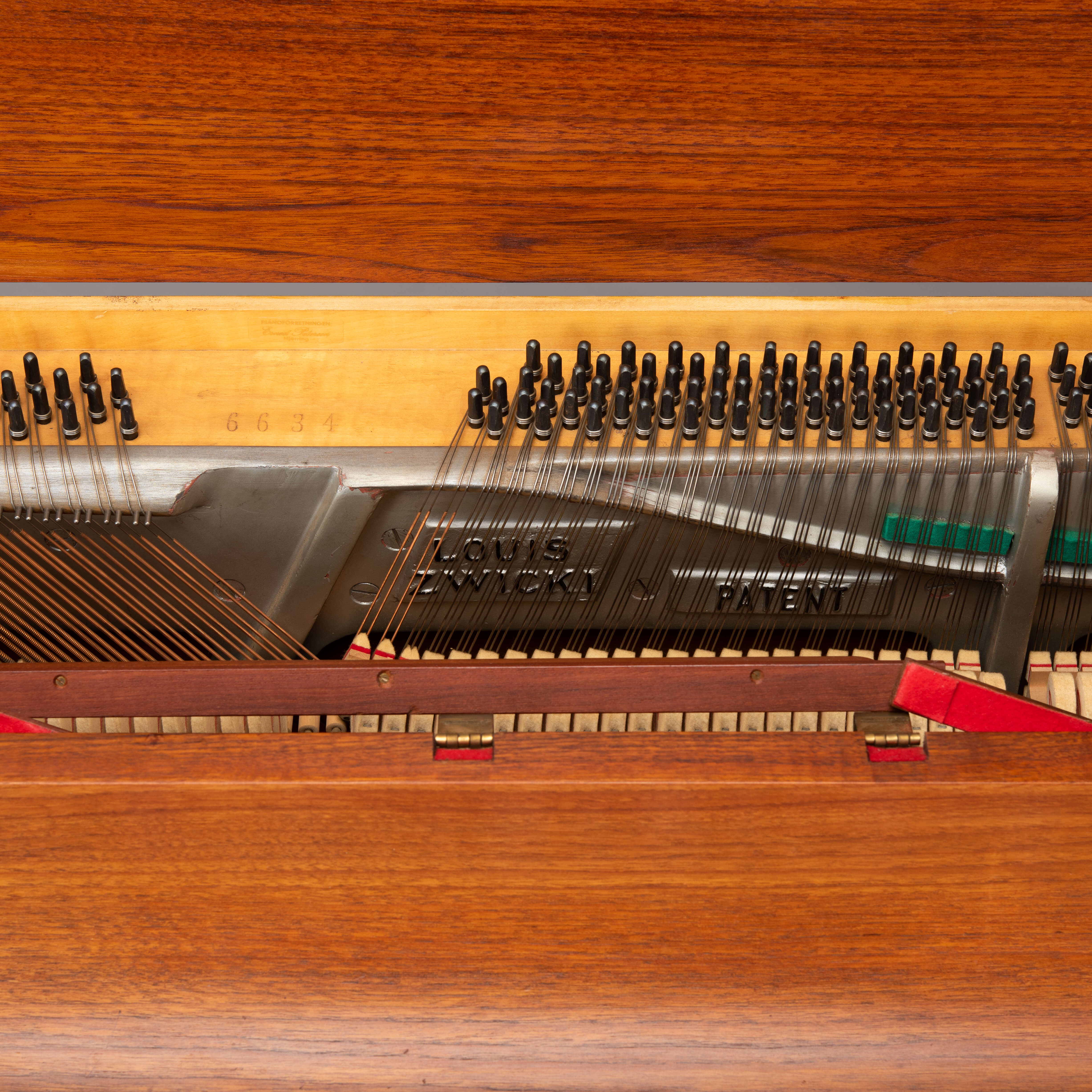 Een zeldzame Deense mid-century pianette gemaakt van prachtig teak. Het wordt een pianette genoemd vanwege de 82 toetsen in plaats van de standaard 88 bij een piano van volledige grootte. Deze pianette is gemaakt door de beroemde pianomaker Louis Zwicki. Elke piano van Louis Zwicki is genummerd. Dit is No. 6634. Zie foto!
