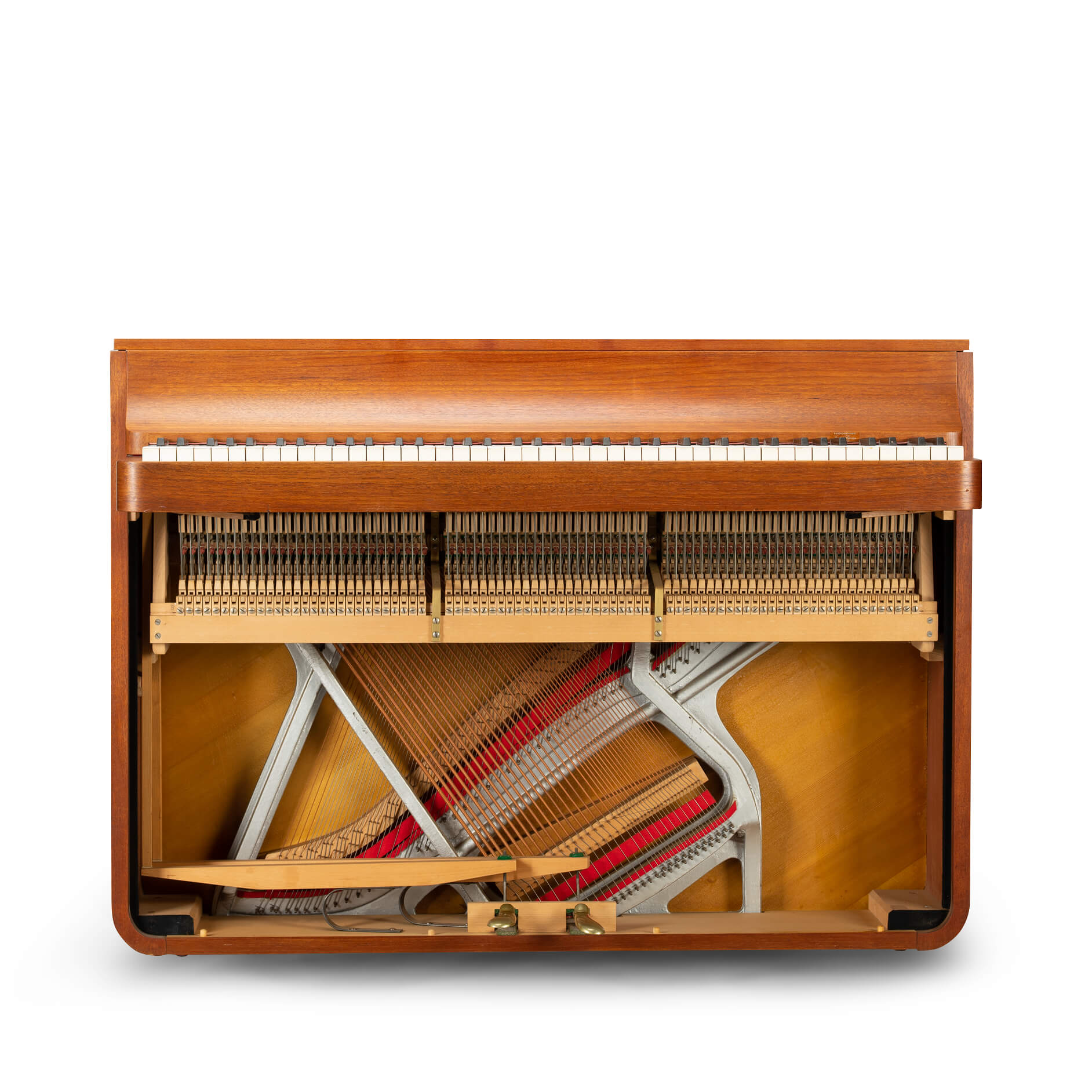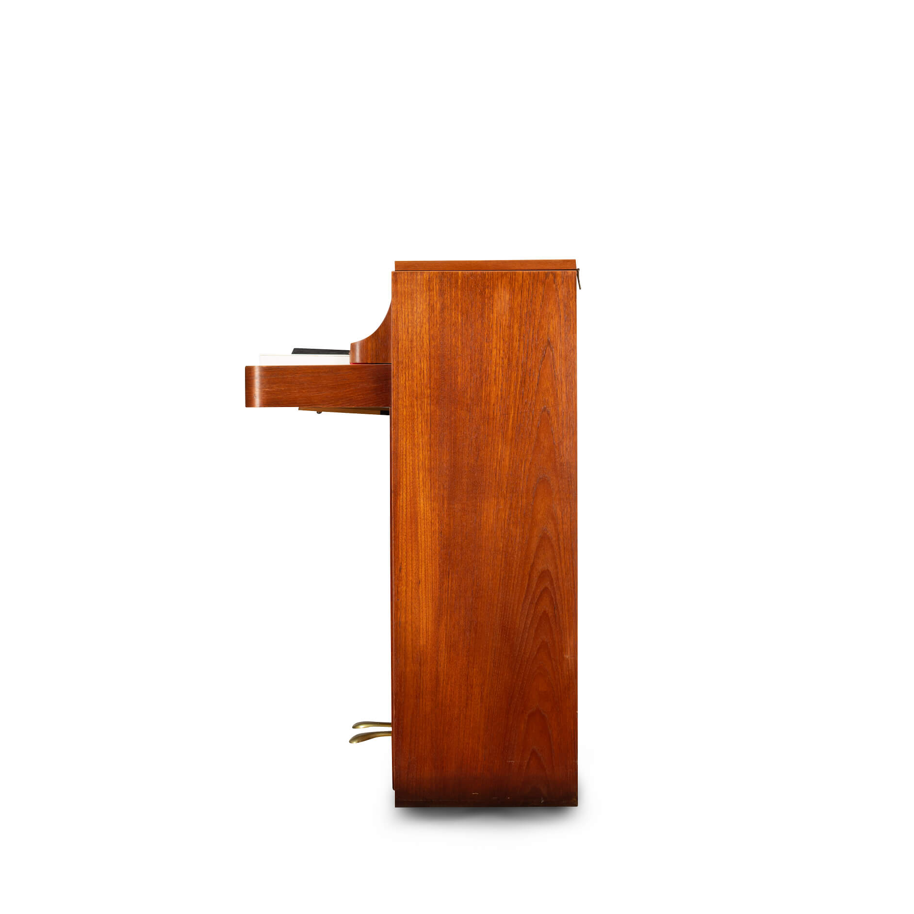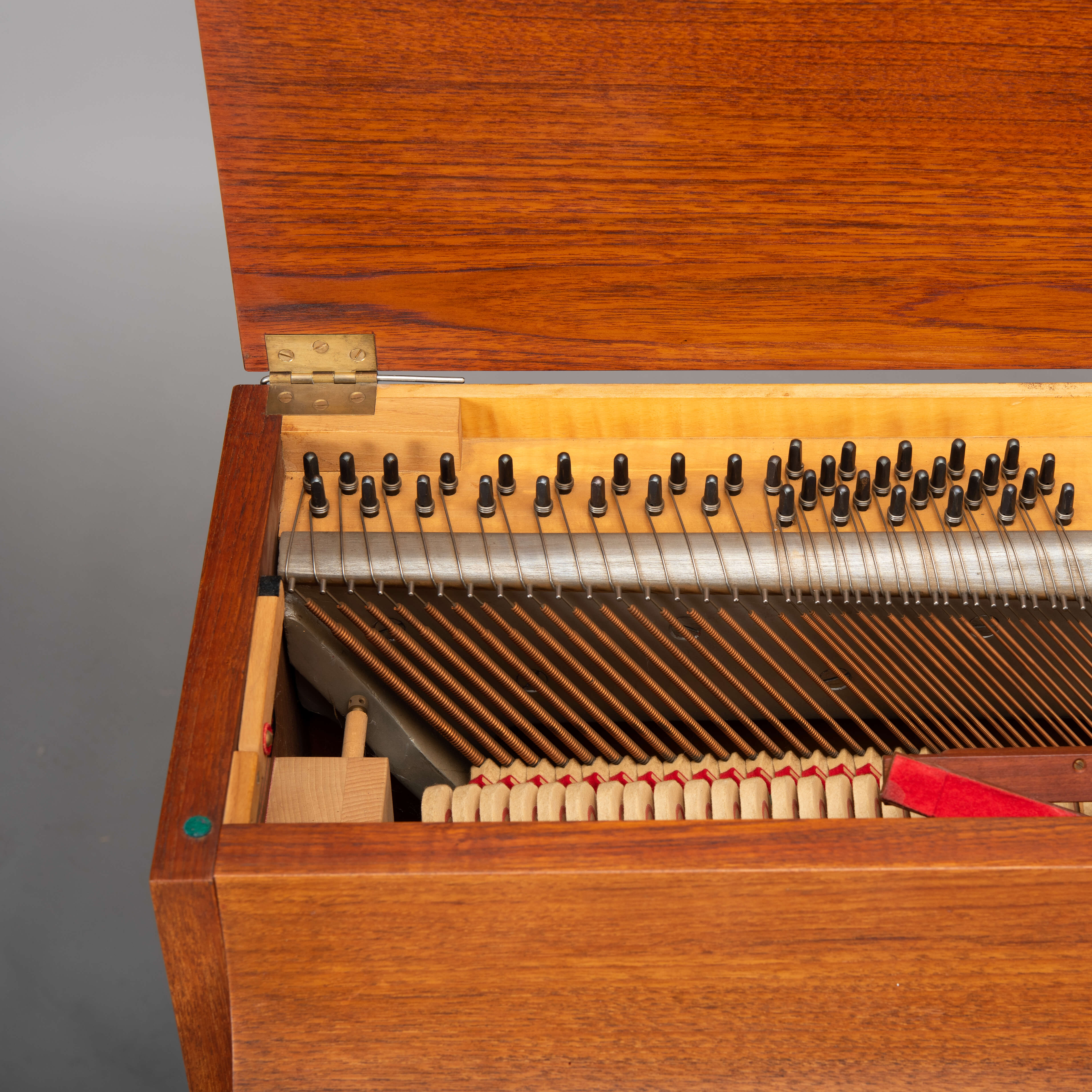 Een zeldzame Deense mid-century pianette gemaakt van prachtig teak. Het wordt een pianette genoemd vanwege de 82 toetsen in plaats van de standaard 88 bij een piano van volledige grootte. Deze pianette is gemaakt door de beroemde pianomaker Louis Zwicki. Elke piano van Louis Zwicki is genummerd. Dit is No. 6634. Zie foto!