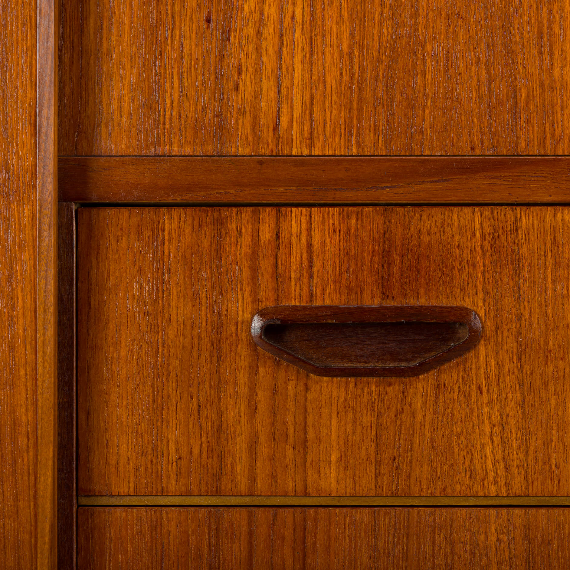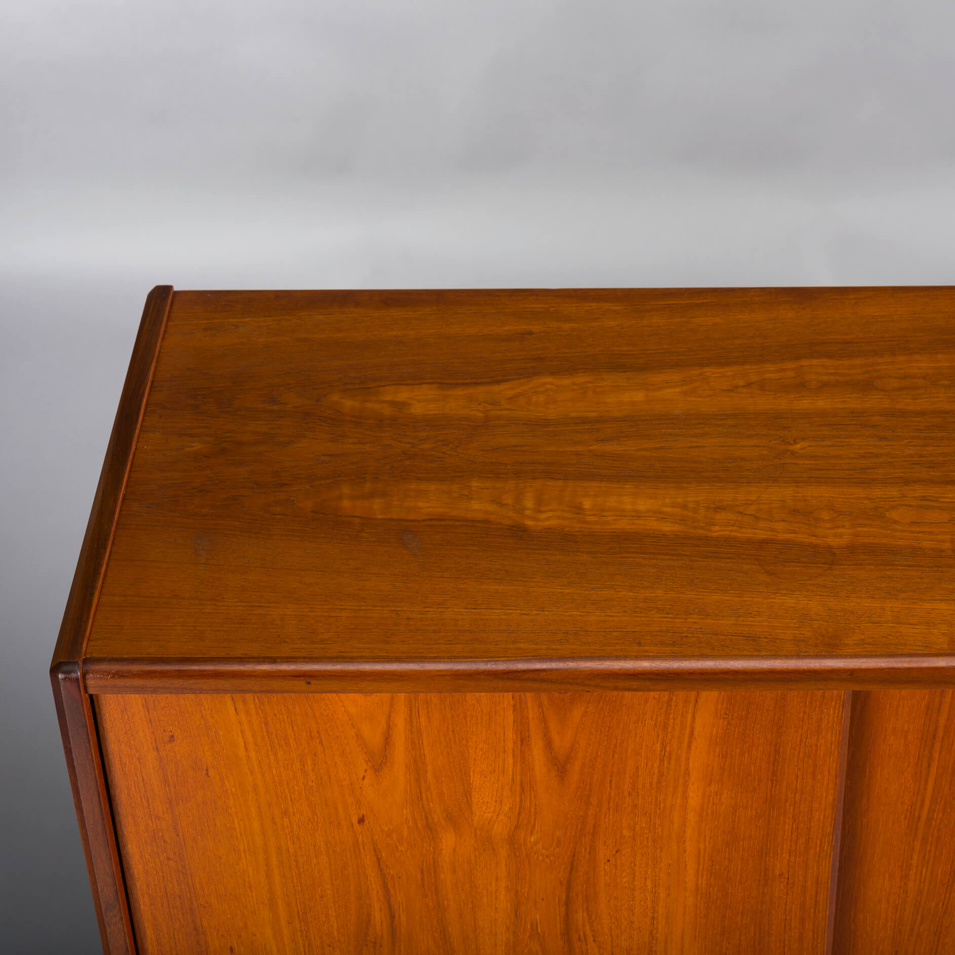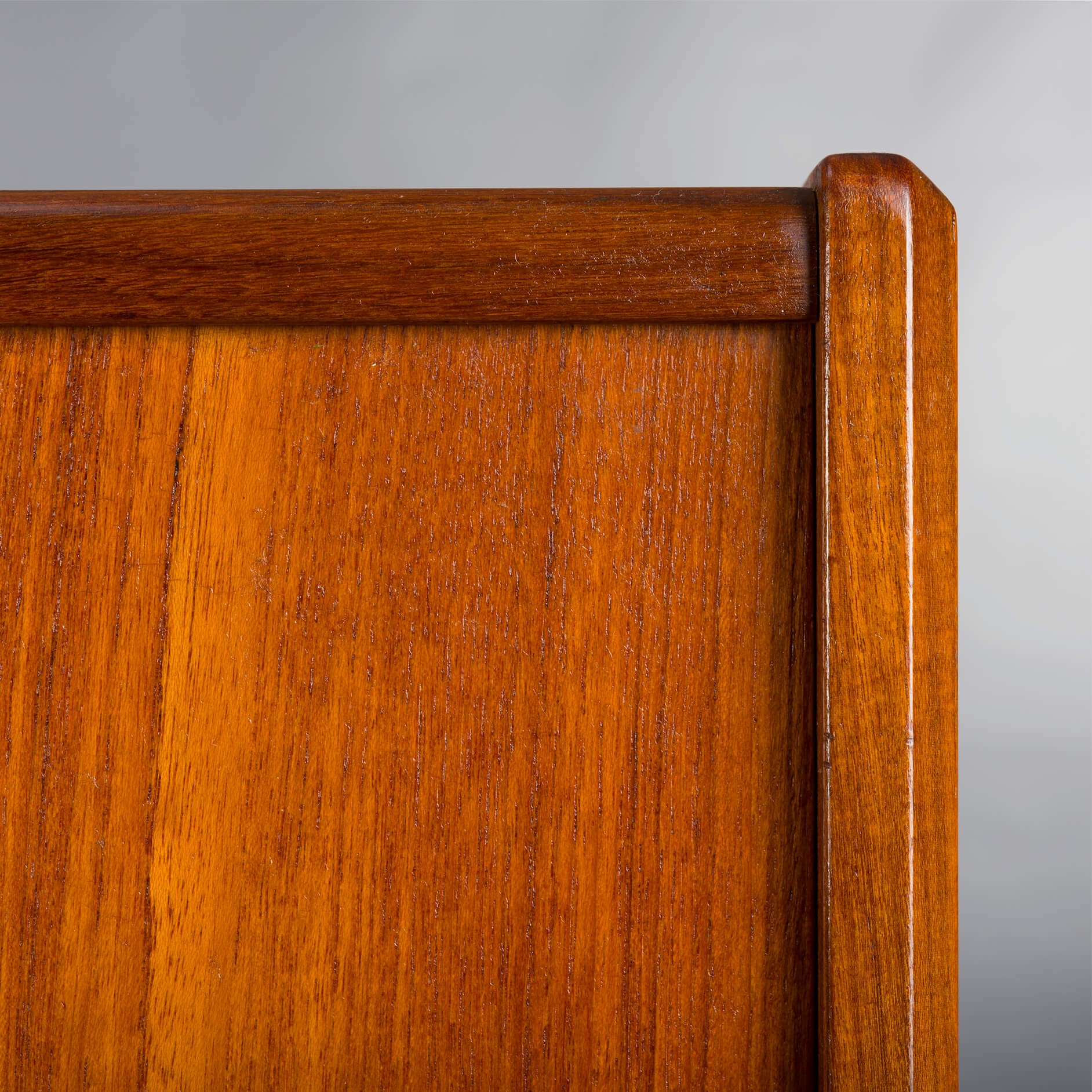 Op de bovenkant van deze kast zitten een aantal vlekken en krassen die je vertellen dat er 50 jaar van deze kast gebruik is gemaakt, desondanks spreken we toch van een goede vintage conditie.