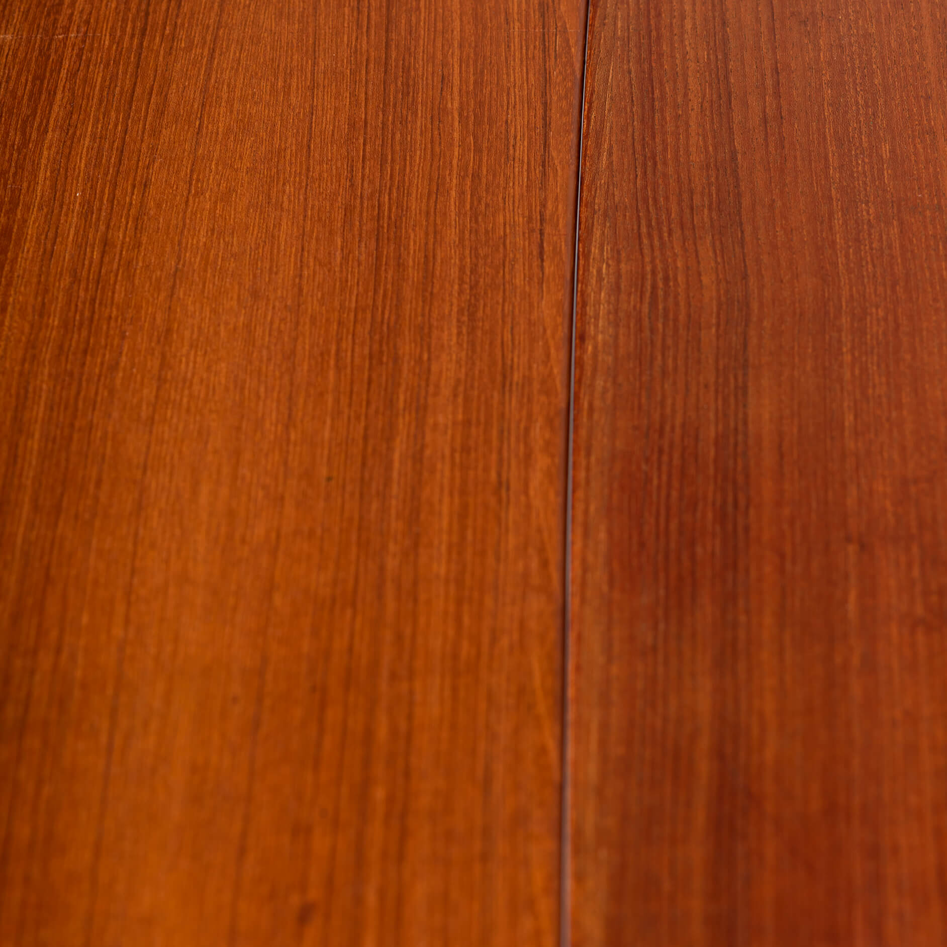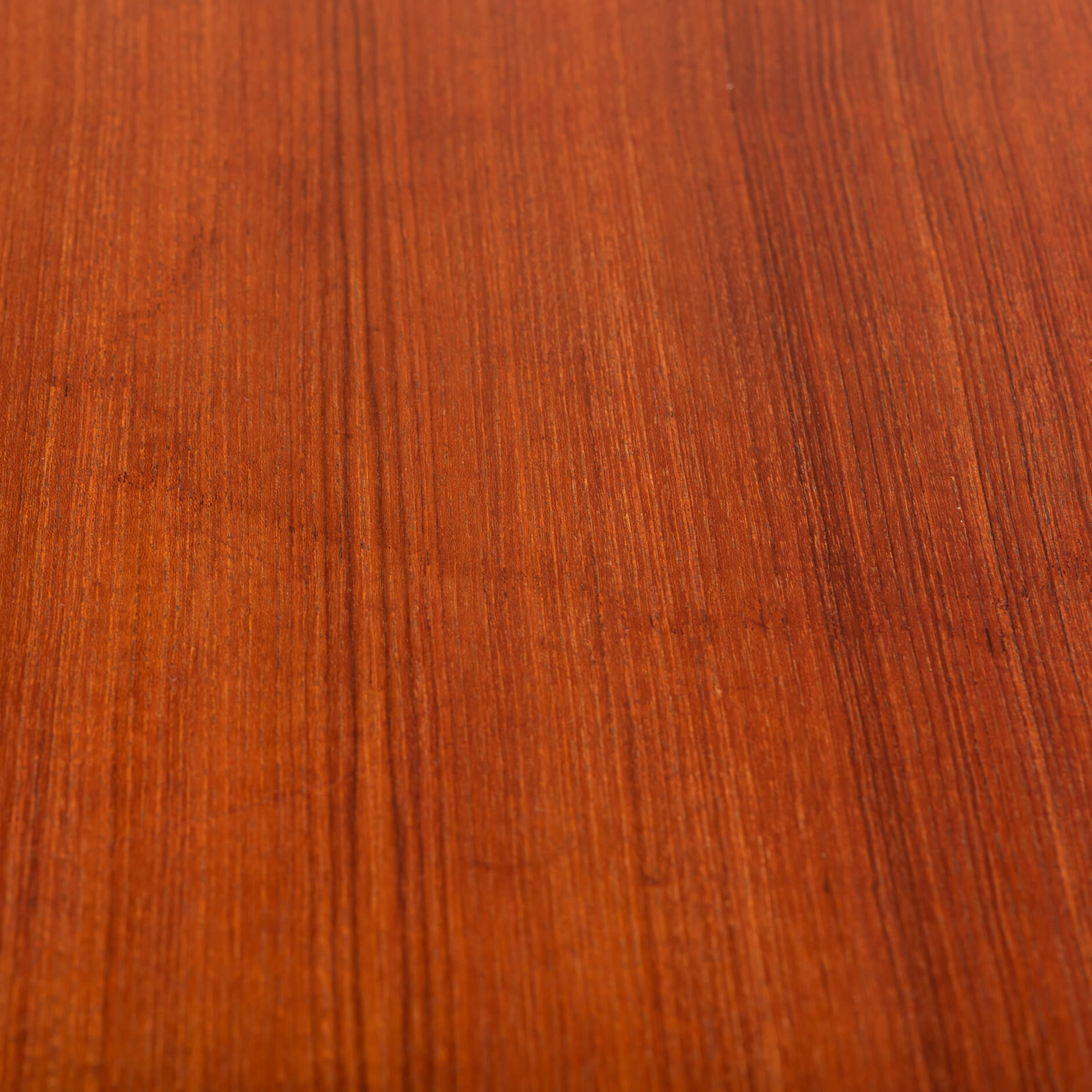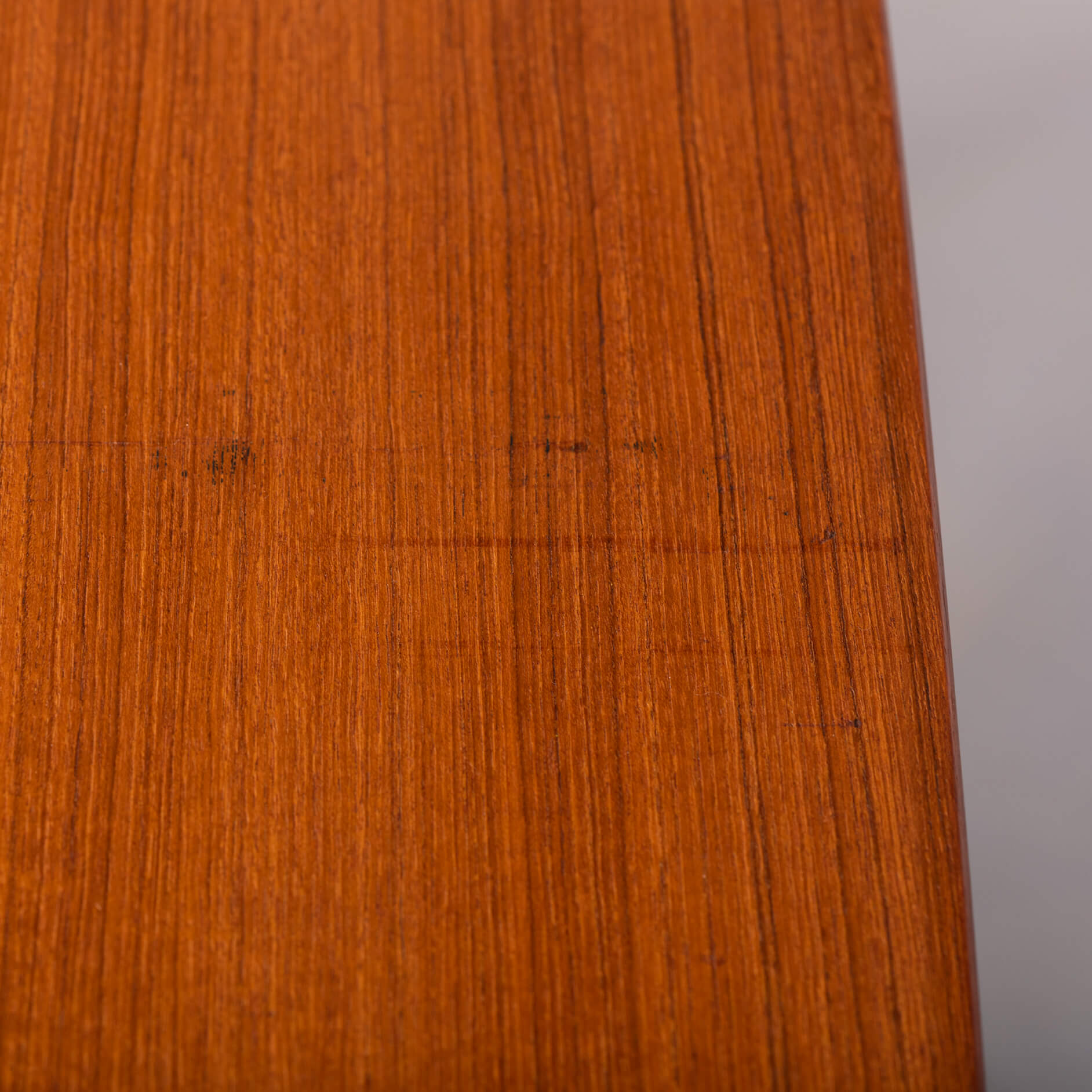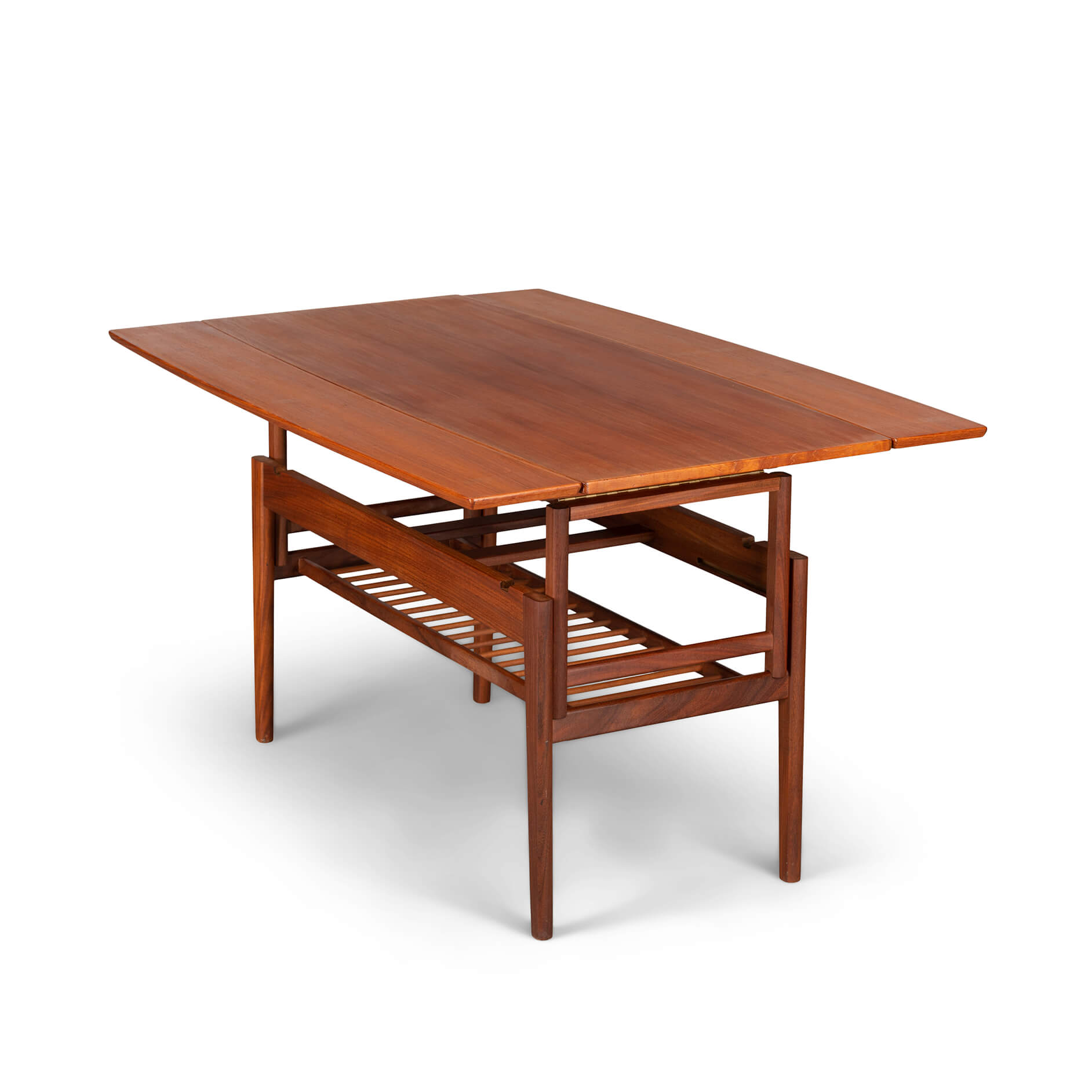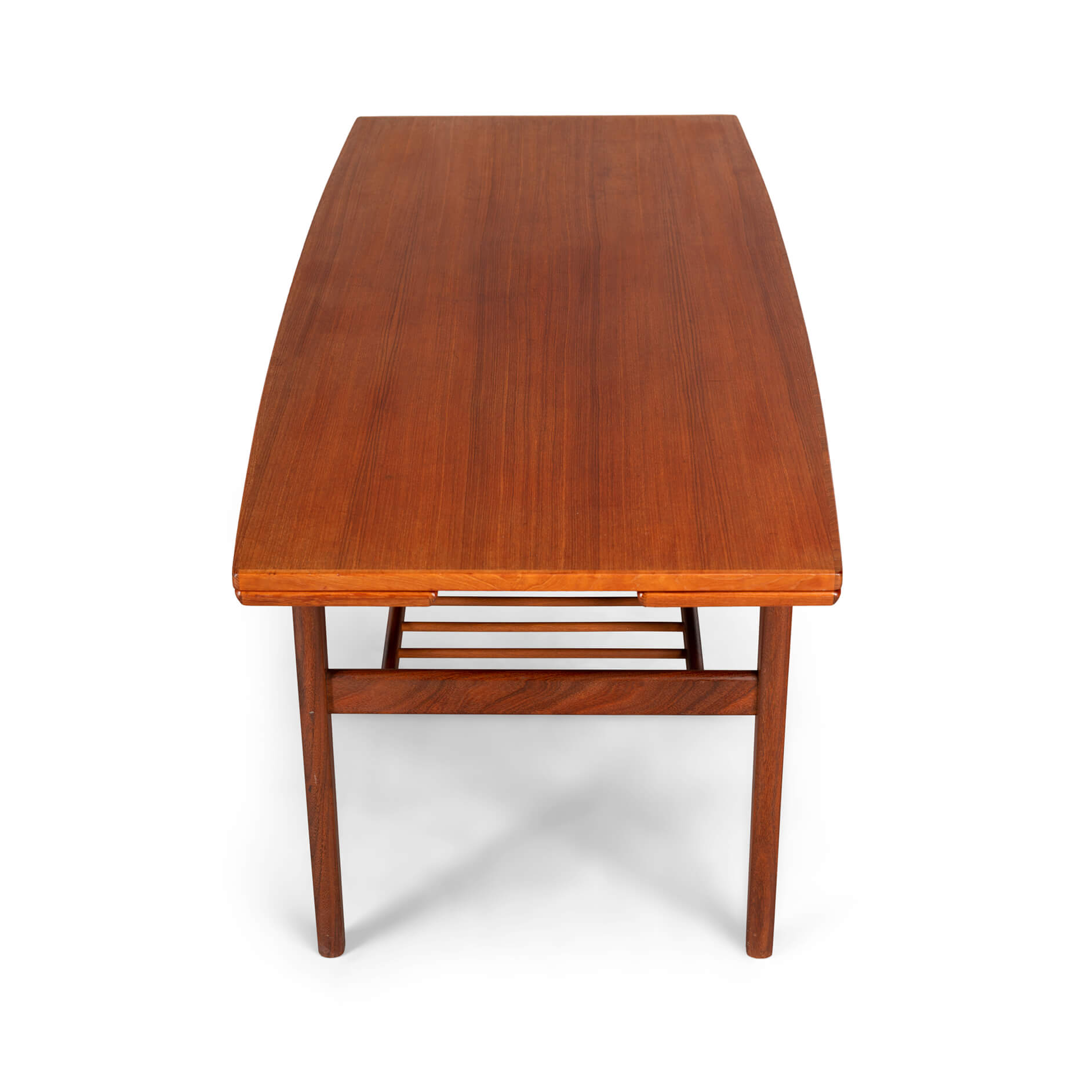 Deze multifunctionele tafel van teak verkeert in een zeer goede vintage staat. Overigens is deze tafel een zeldzame vondst vanwege het tijdschriftenrek onder het blad van de salontafel.