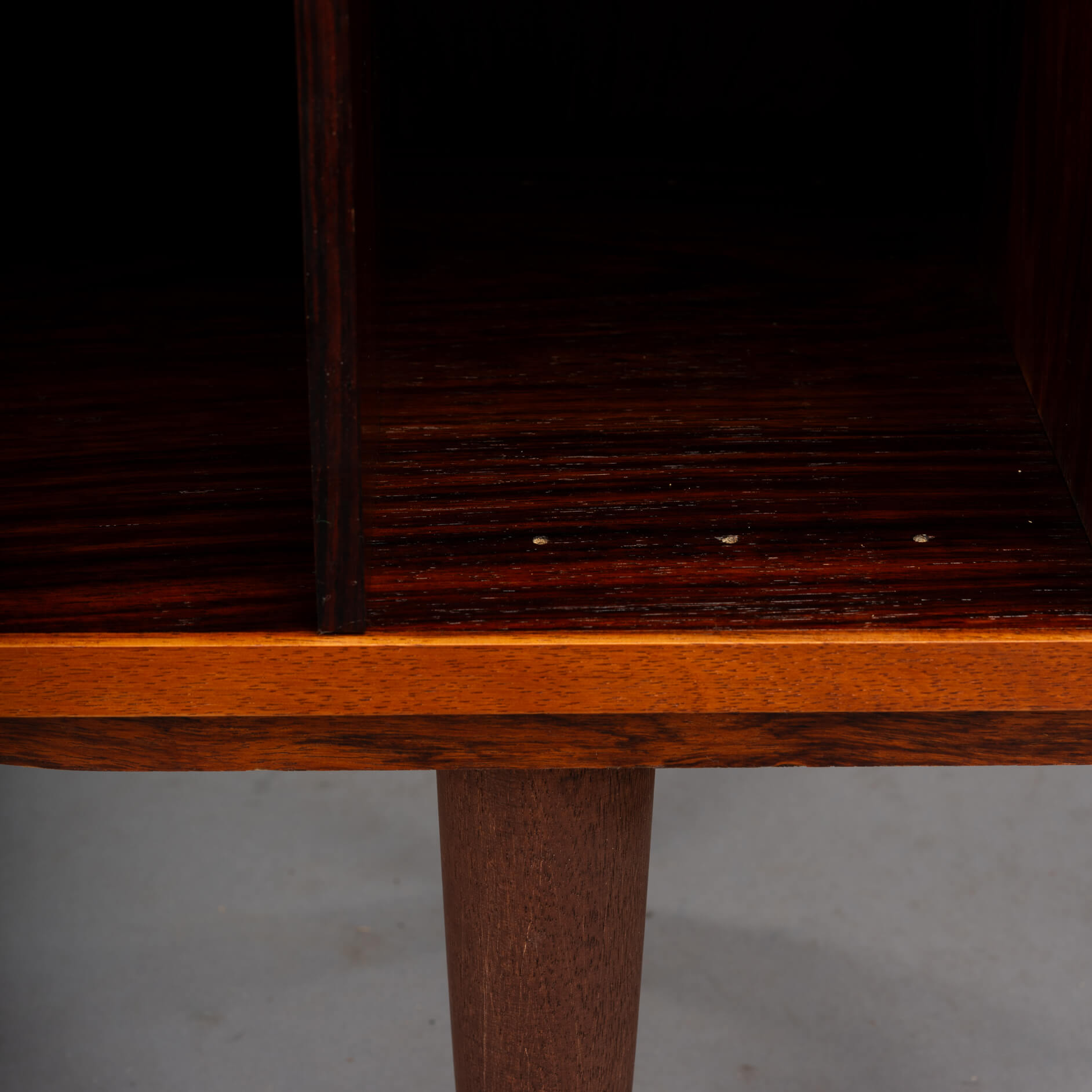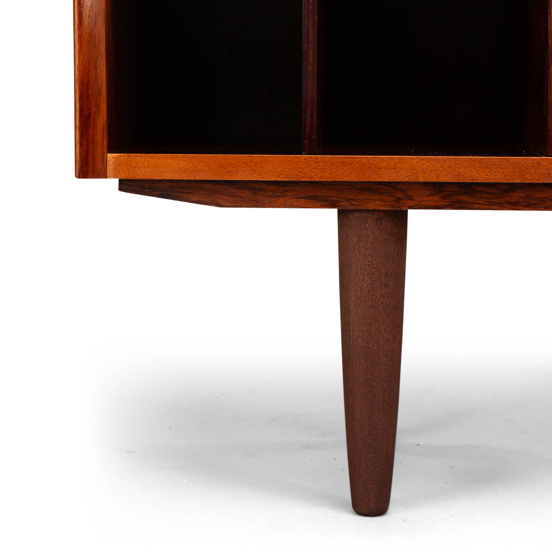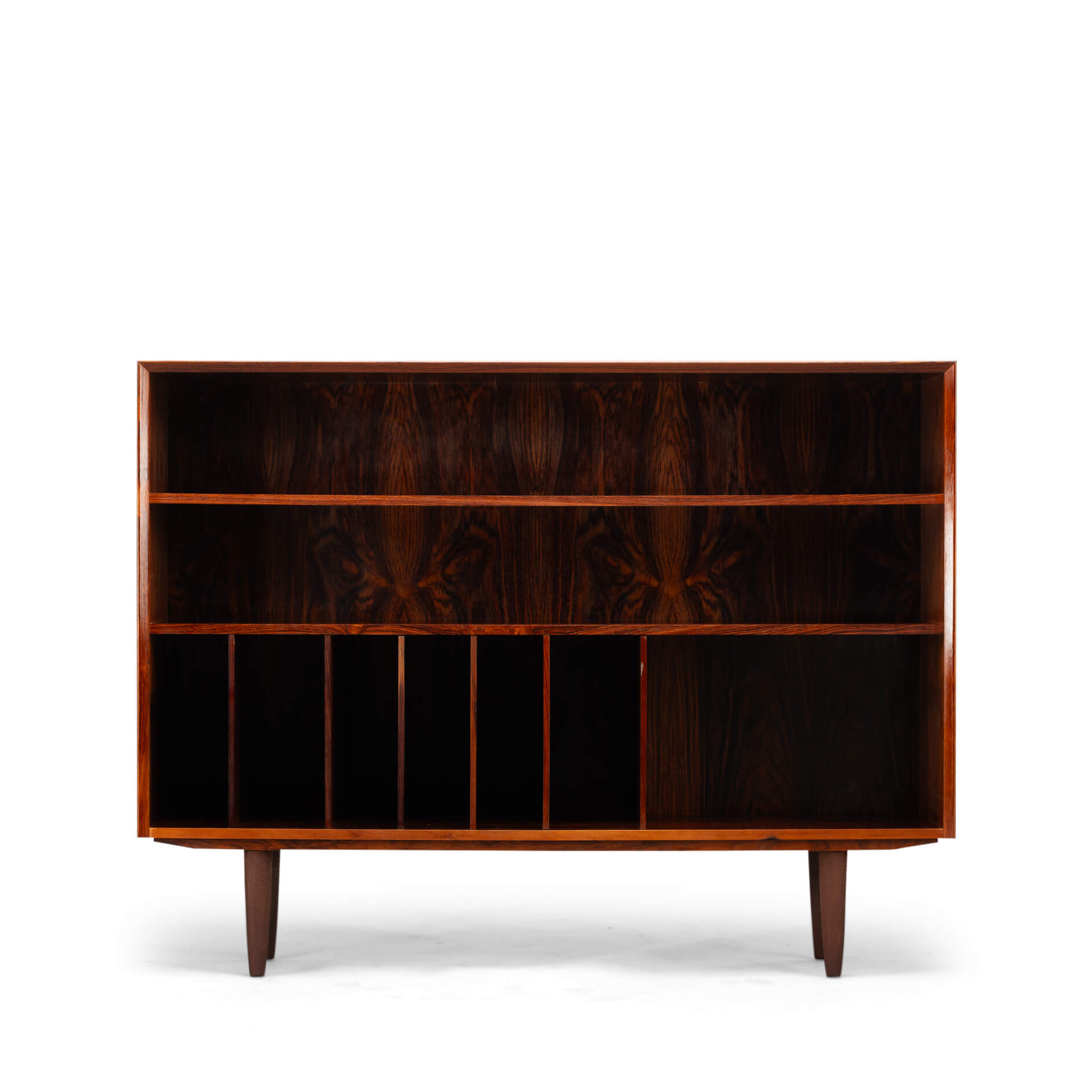 Deense zeldzame boekenkast met LP rek in prachtig palissander fineer. Design by E. Brouer en gemaakt door de Brouer Mobelfabrik.