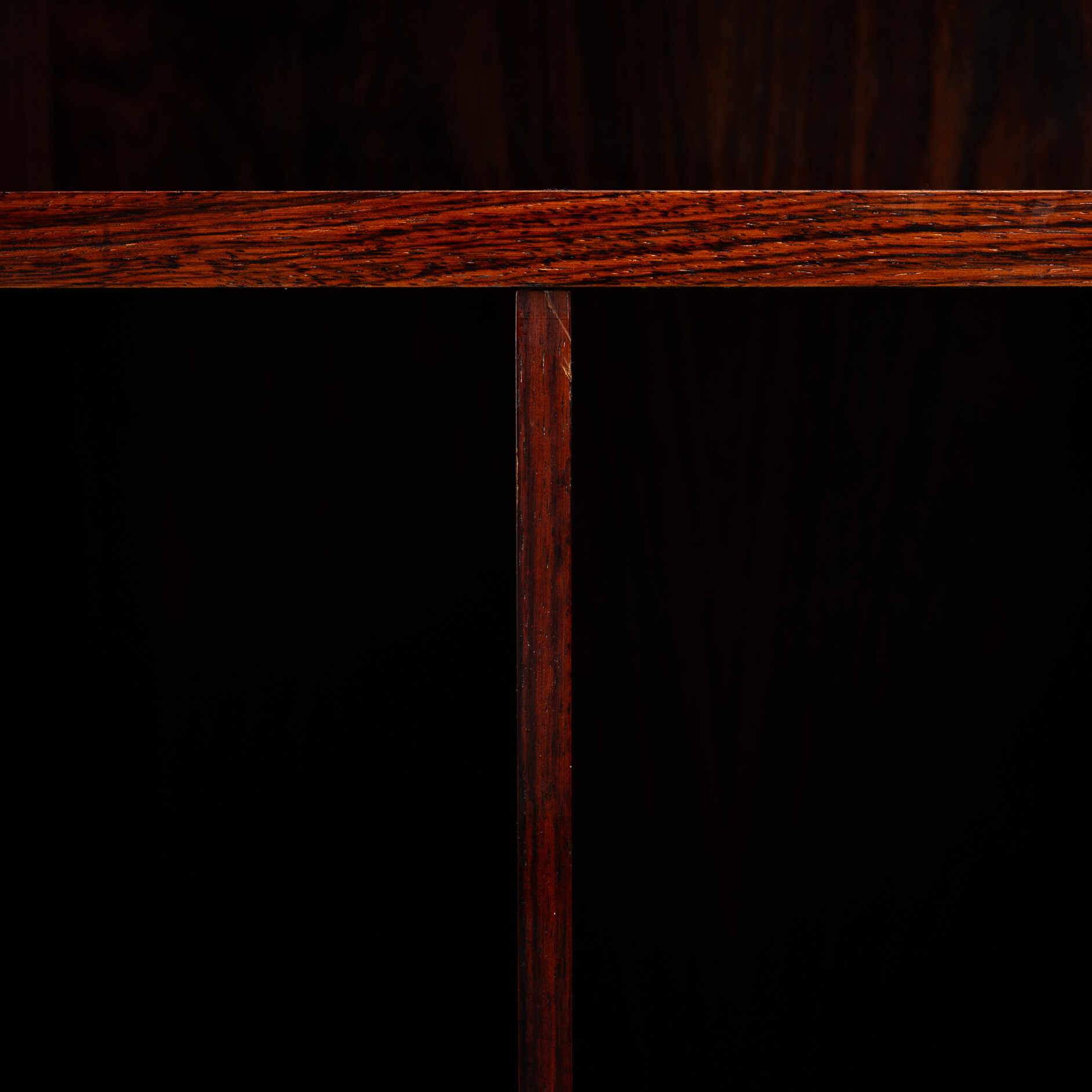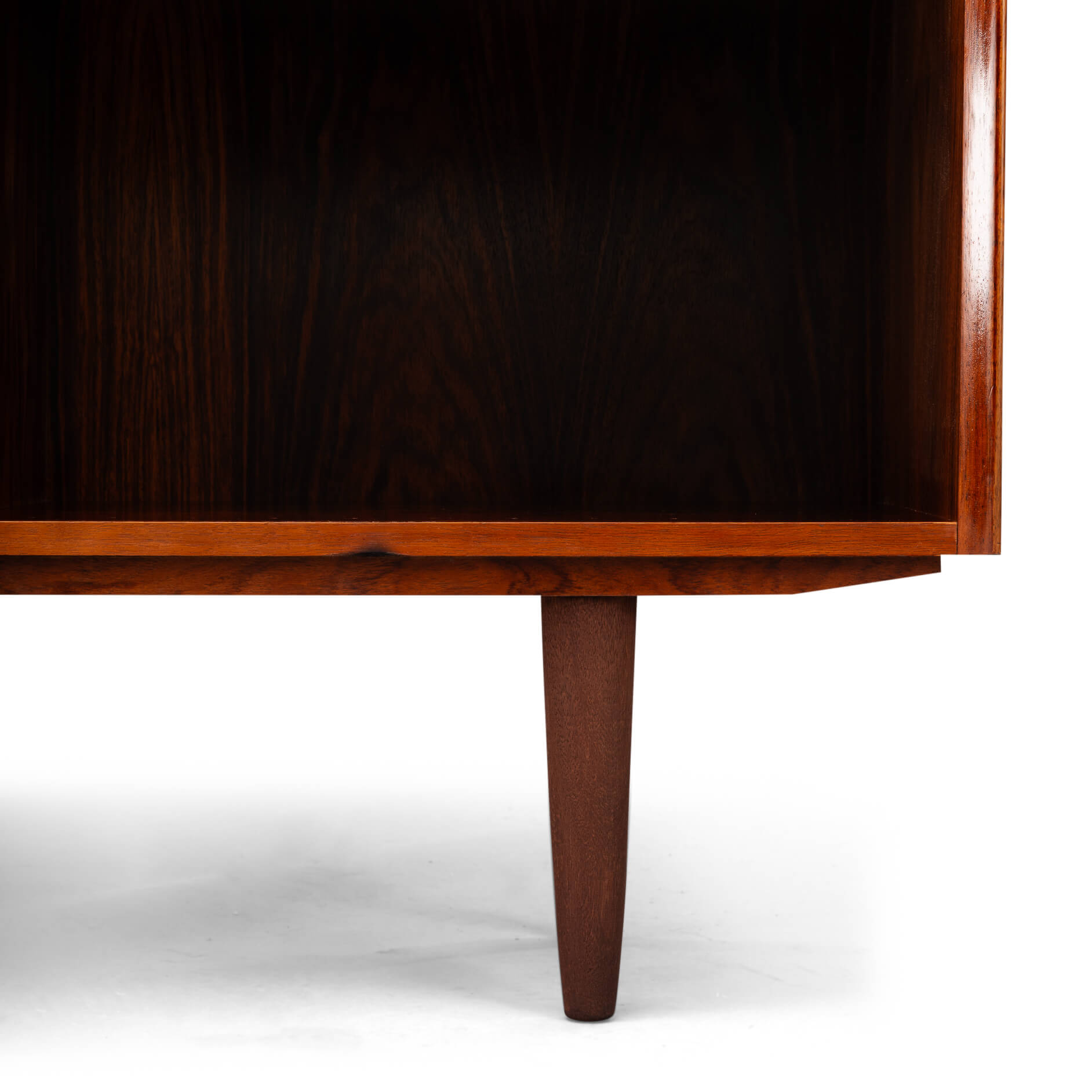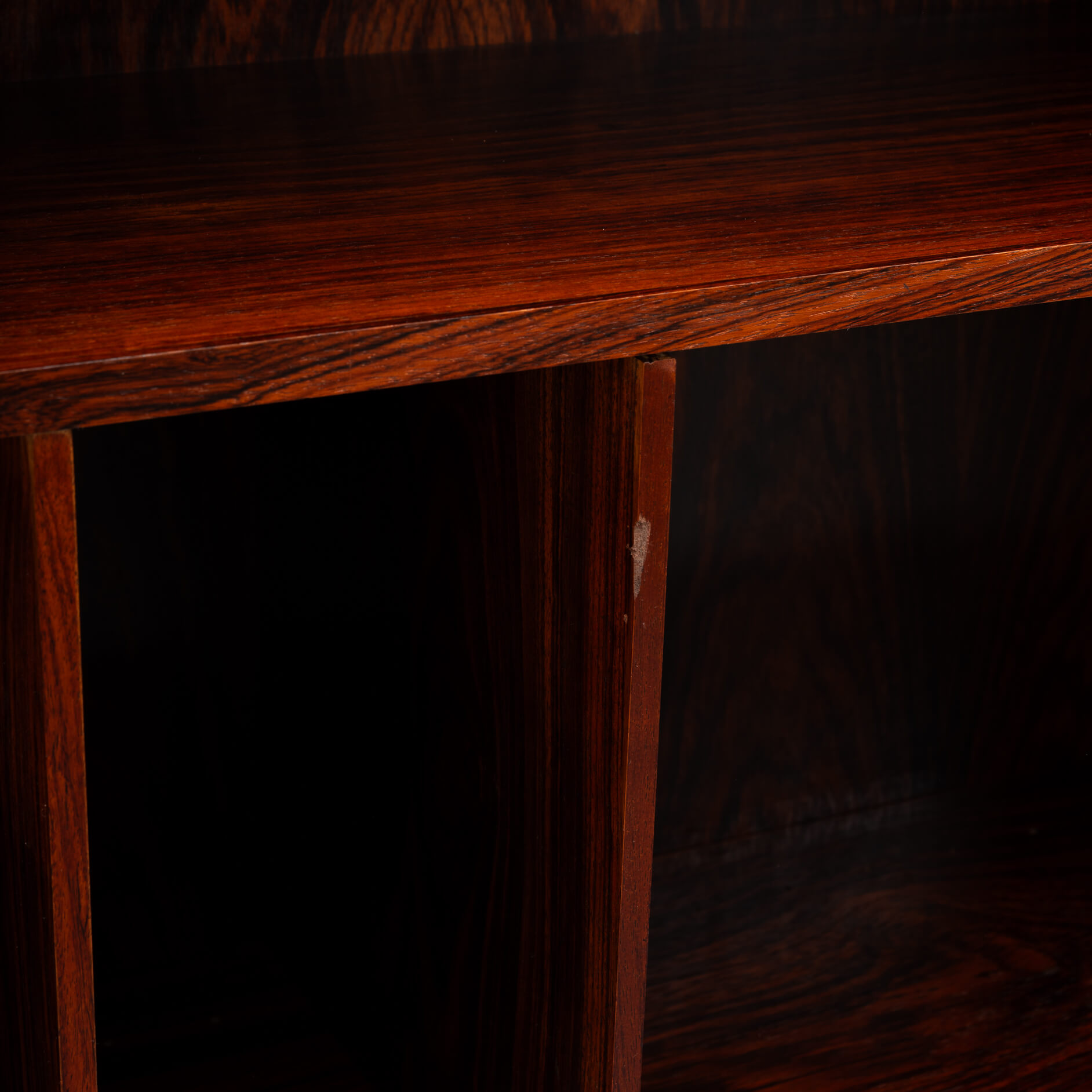 Deense zeldzame boekenkast met LP rek in prachtig palissander fineer. Design by E. Brouer en gemaakt door de Brouer Mobelfabrik.
