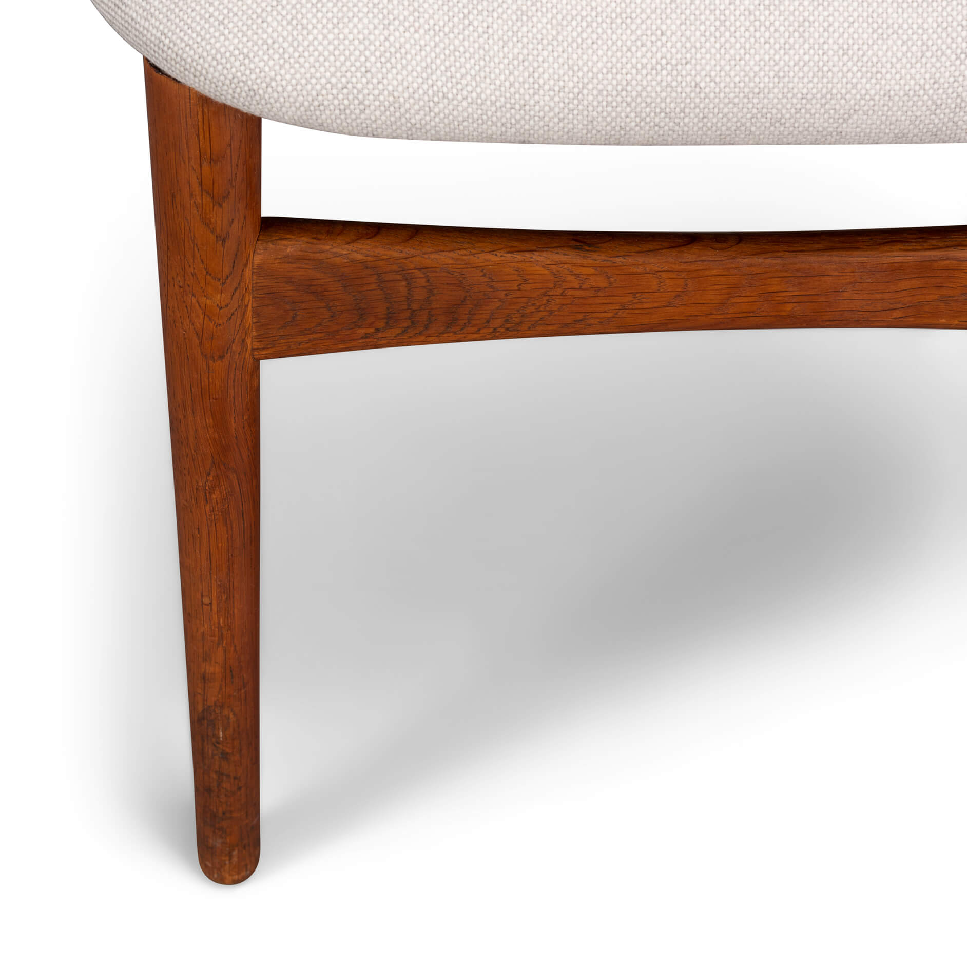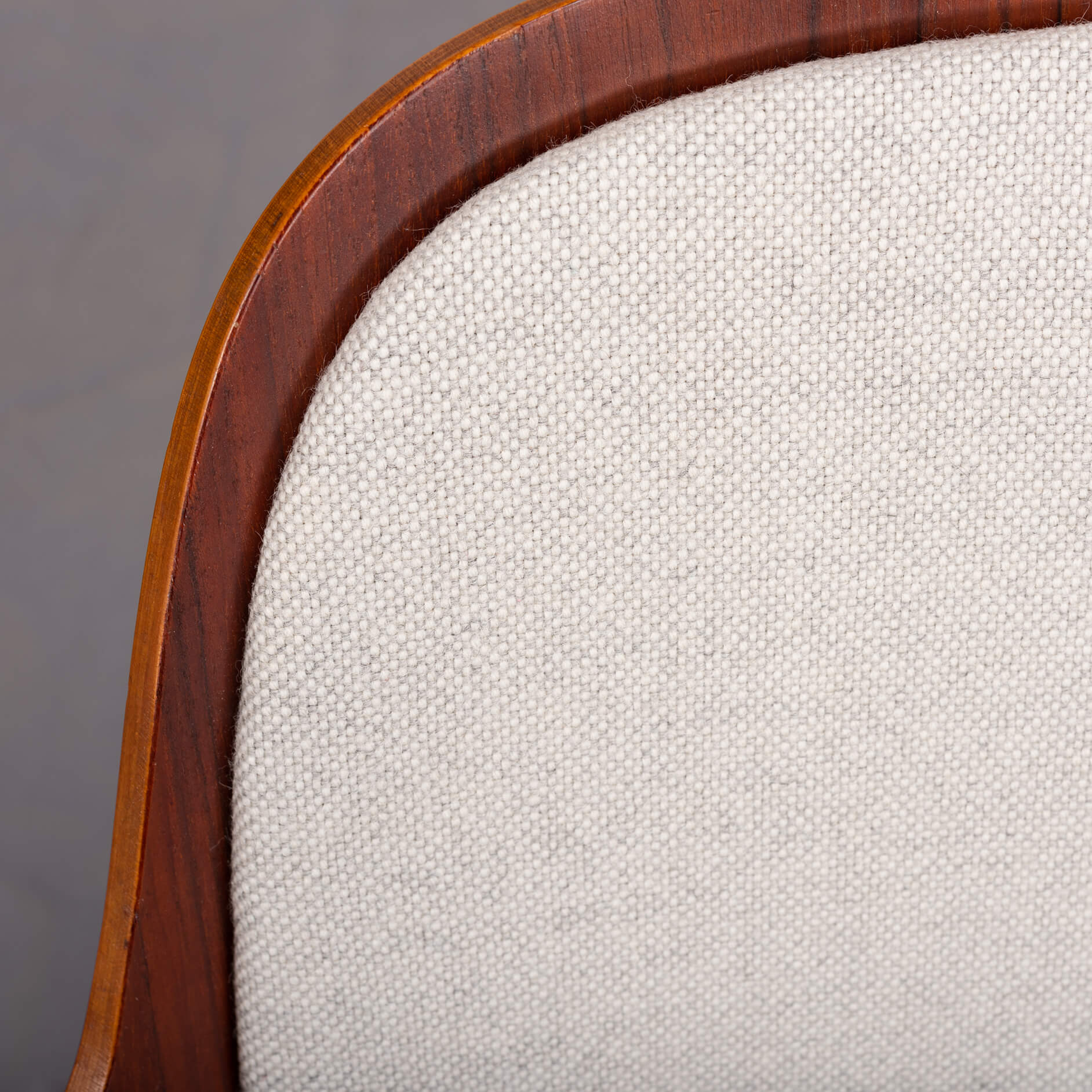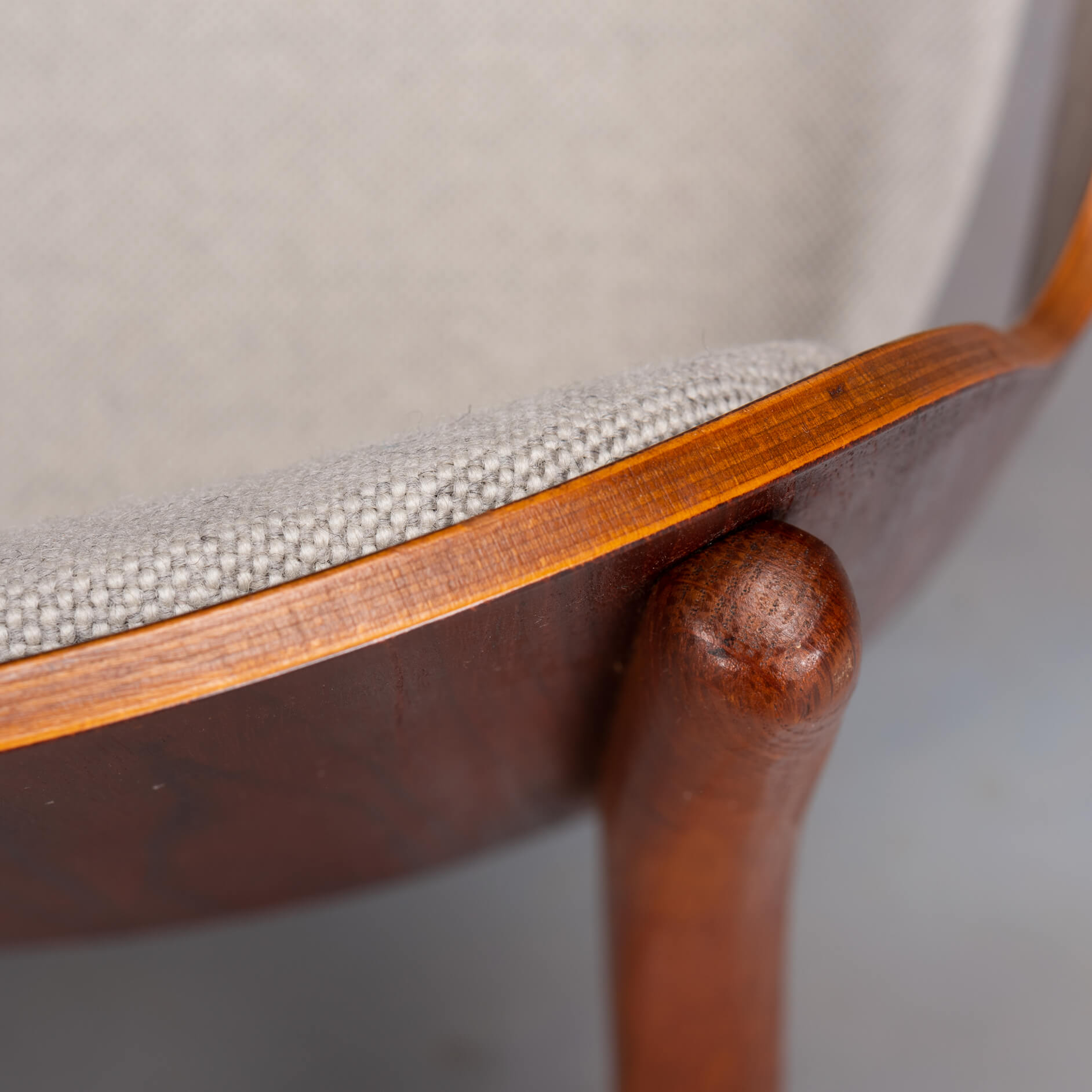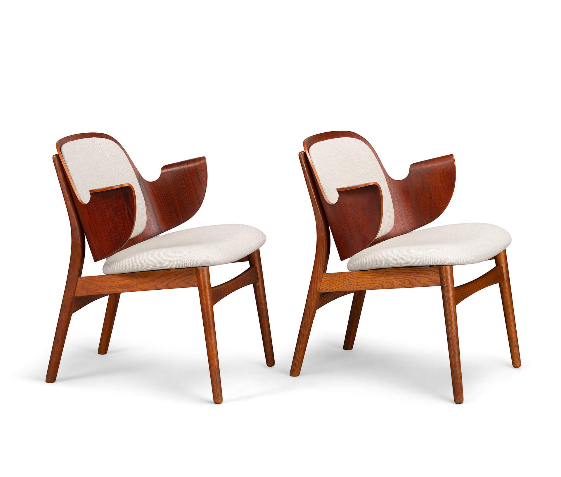 Deze zeldzame stoelen zijn ontworpen door Arne Hovmand Olsen in de jaren zestig. Deze stoelen werden geproduceerd door high-end meubelmaker Bramin Møbler en zijn gemaakt van massief teak, multiplex en opnieuw gestoffeerd met Ploegwool Kl. 91. Deze twee stoelen met armleuningen worden alleen als set verkocht en zien er geweldig uit in elk modern interieur. Bovendien zitten deze elegante stoelen bijzonder lekker!