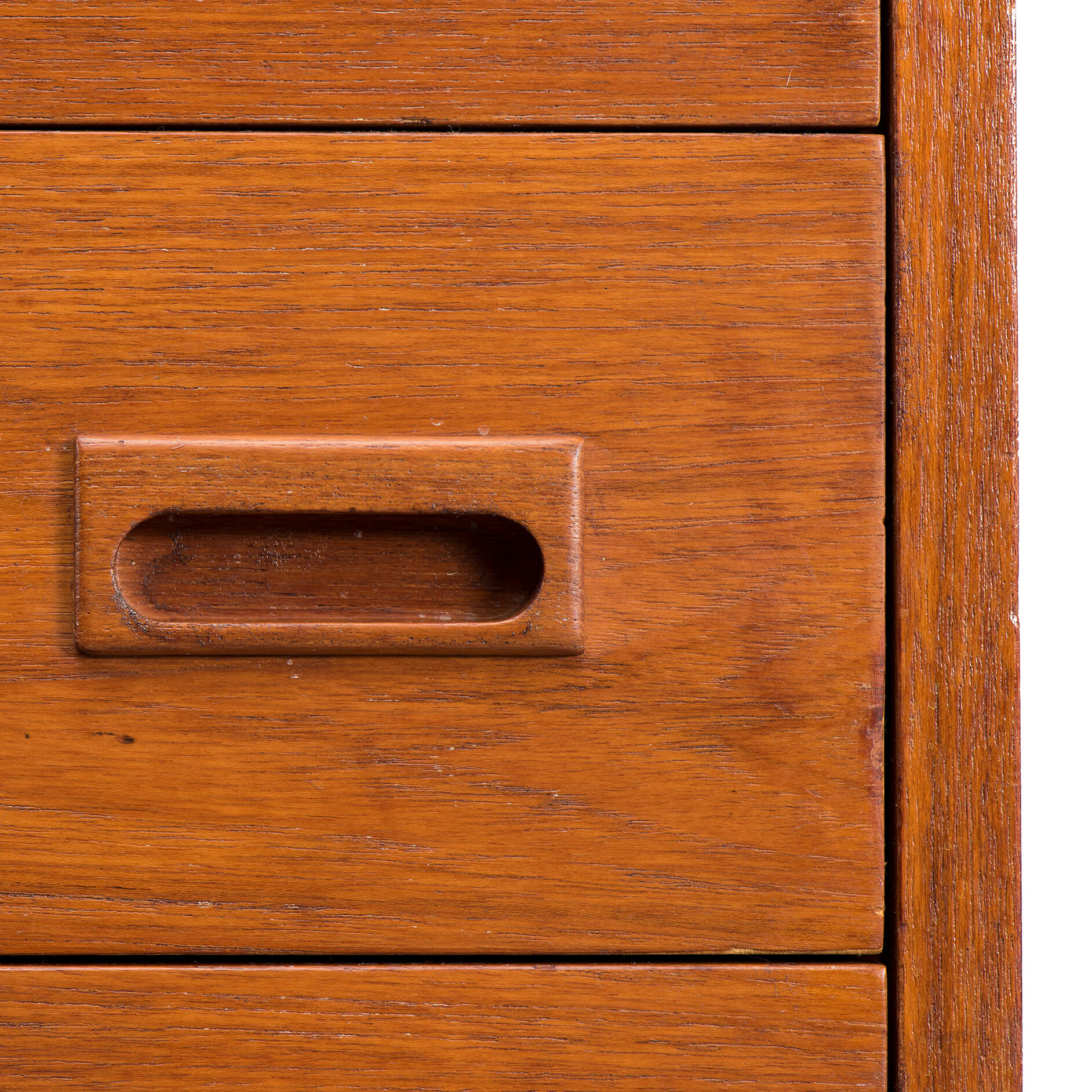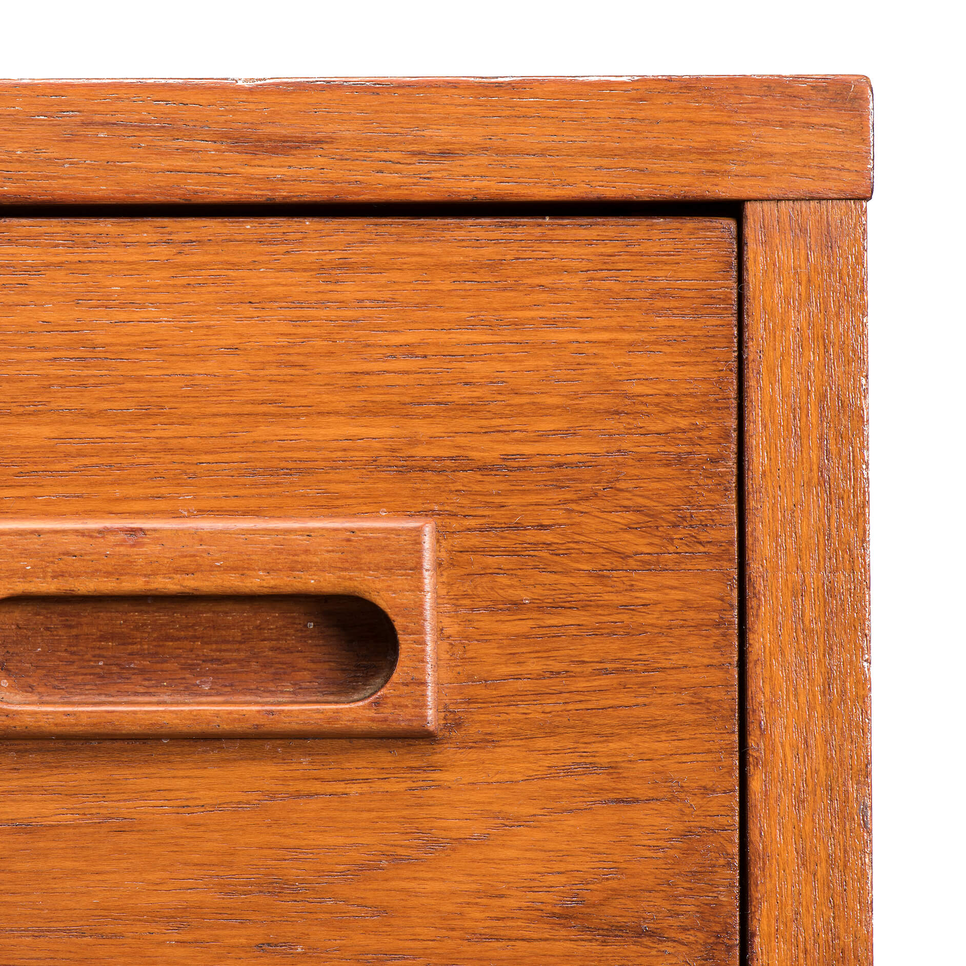 Zeer duidelijke doelstelling voor dit ‘tall boy’ ladeblok, opslag eerste prioriteit! De greepjes zijn een leuke twist. Wij denken dat deze in teak uitgevoerde ladenkast op een kantoor heeft gestaan. Het geeft in je studeerkamer het typische jaren 50 office gevoel, je gaat er bijna een whiskey bij drinken ;-)