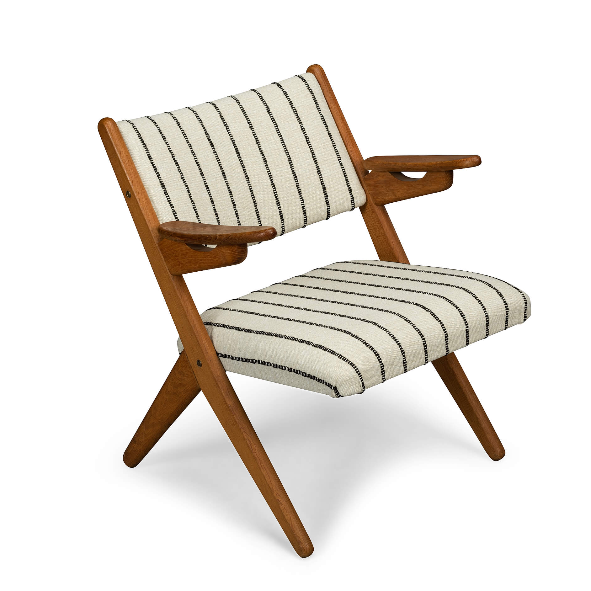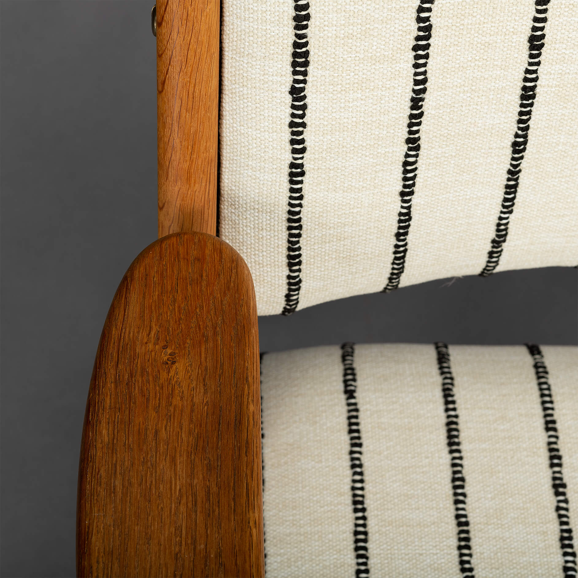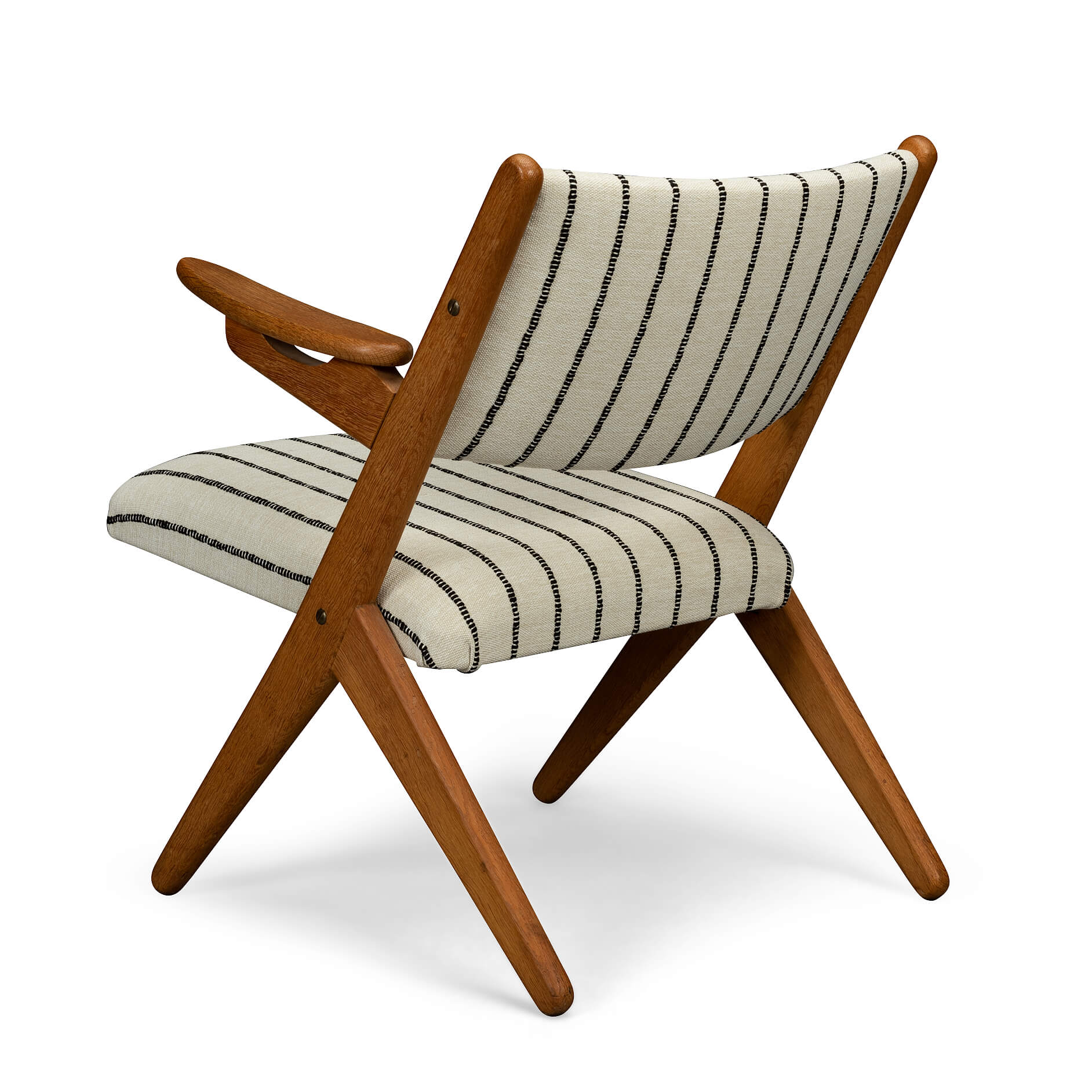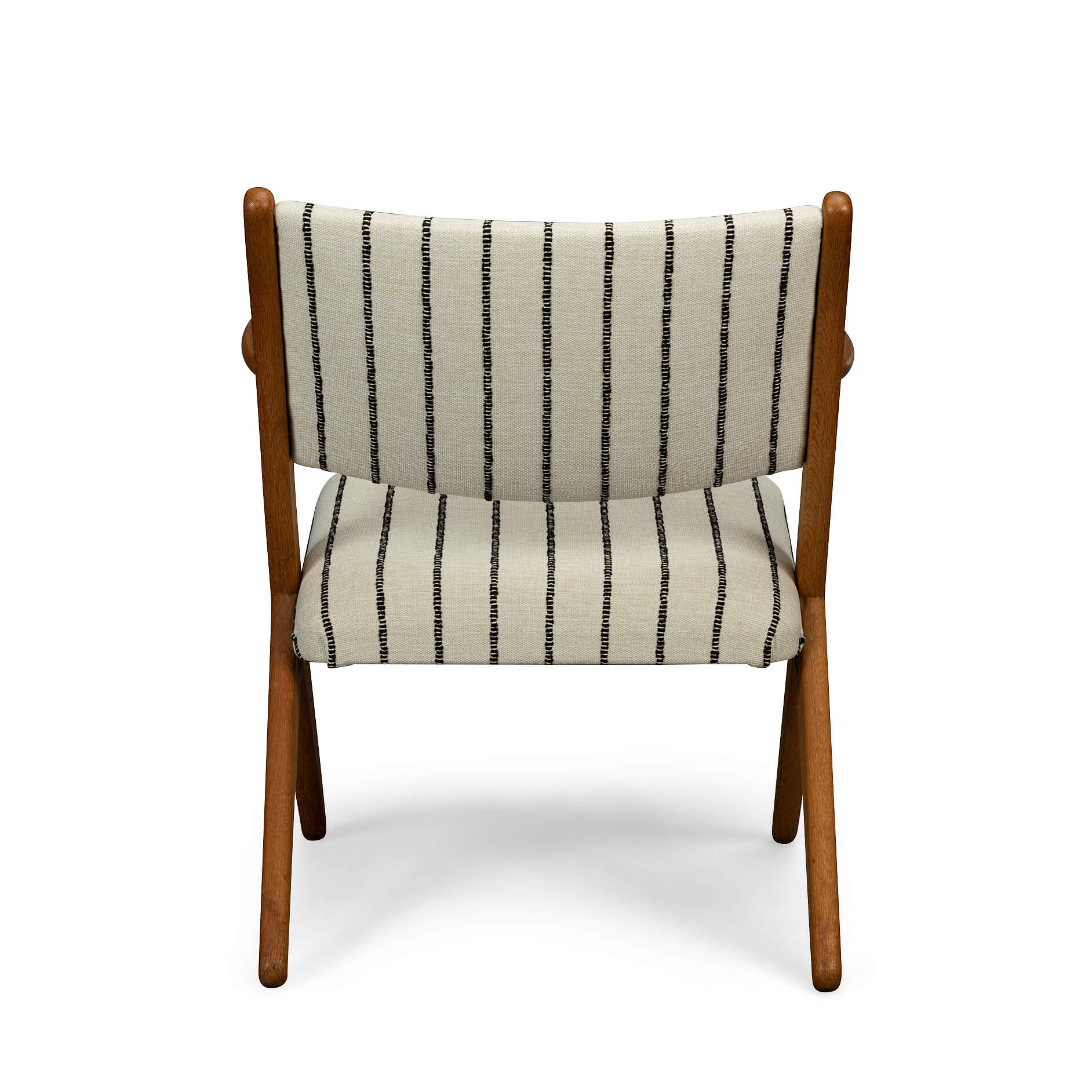 Deense design fauteuil van Arne Hovmand Olsen. De kussens zijn volledig vervangen en de gekozen stof (100% Polyolefin) is VANO Tanger No. 402.
