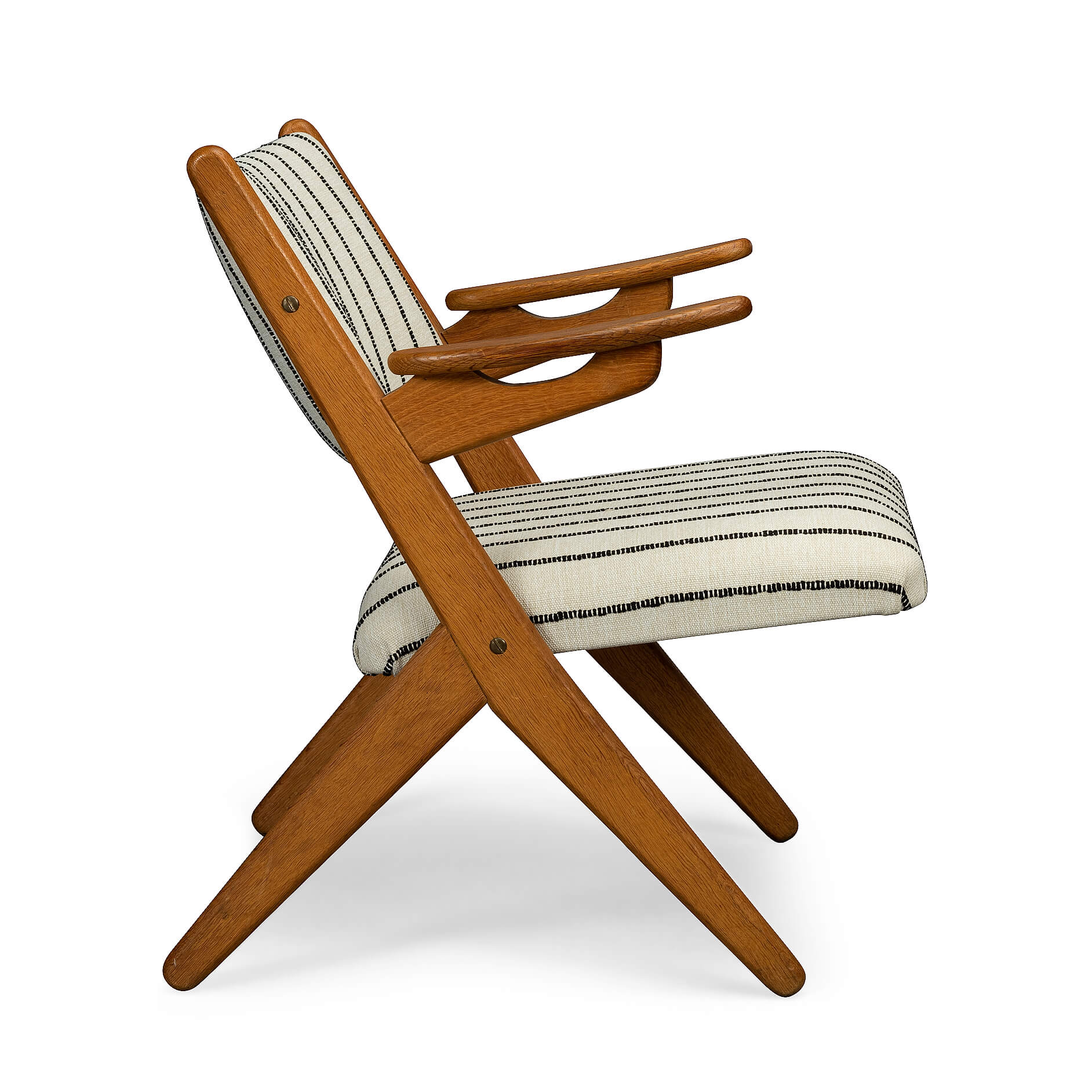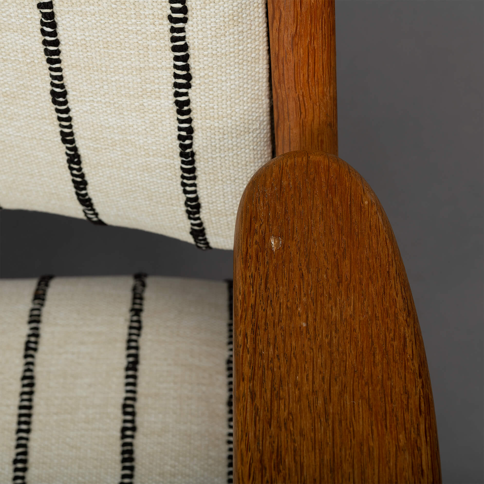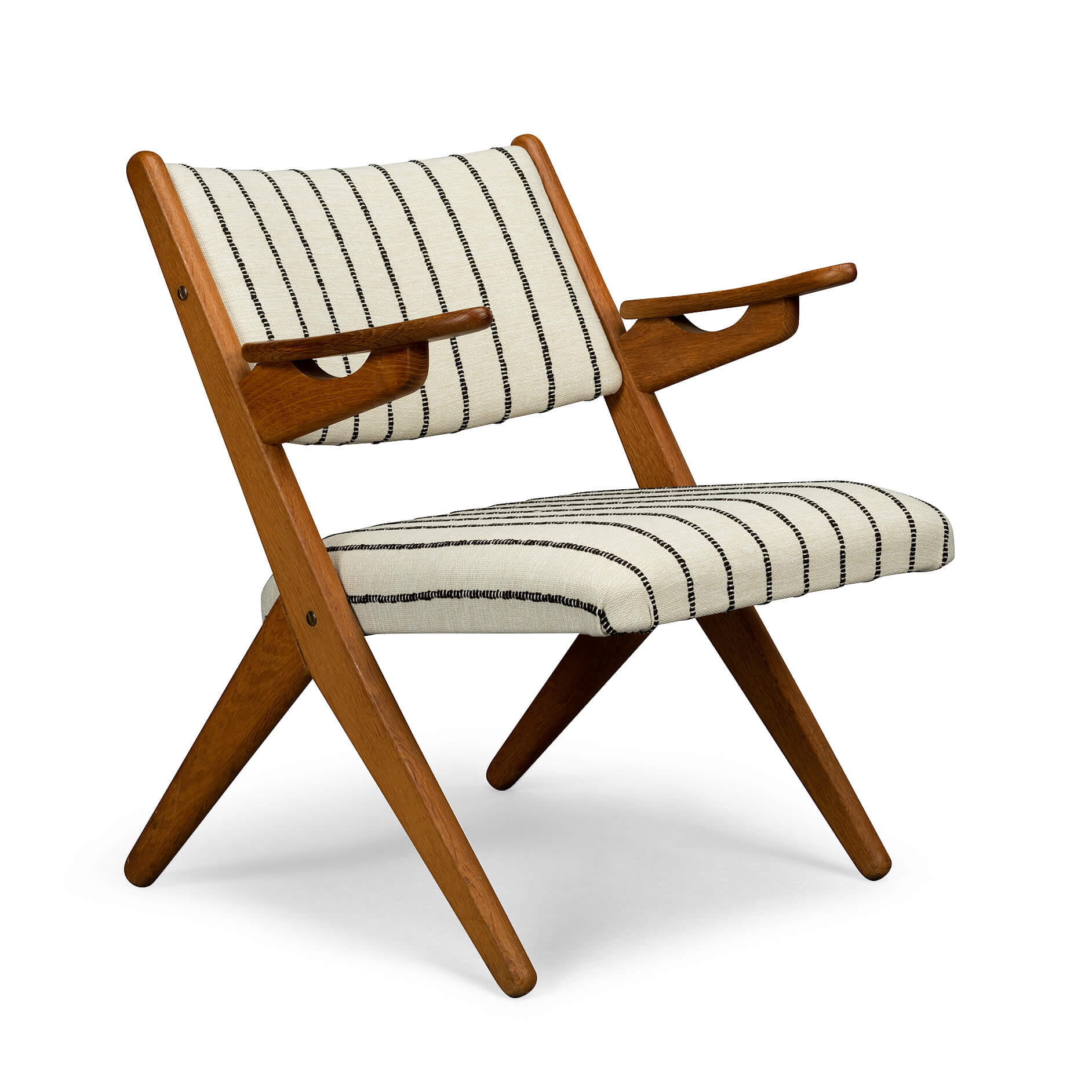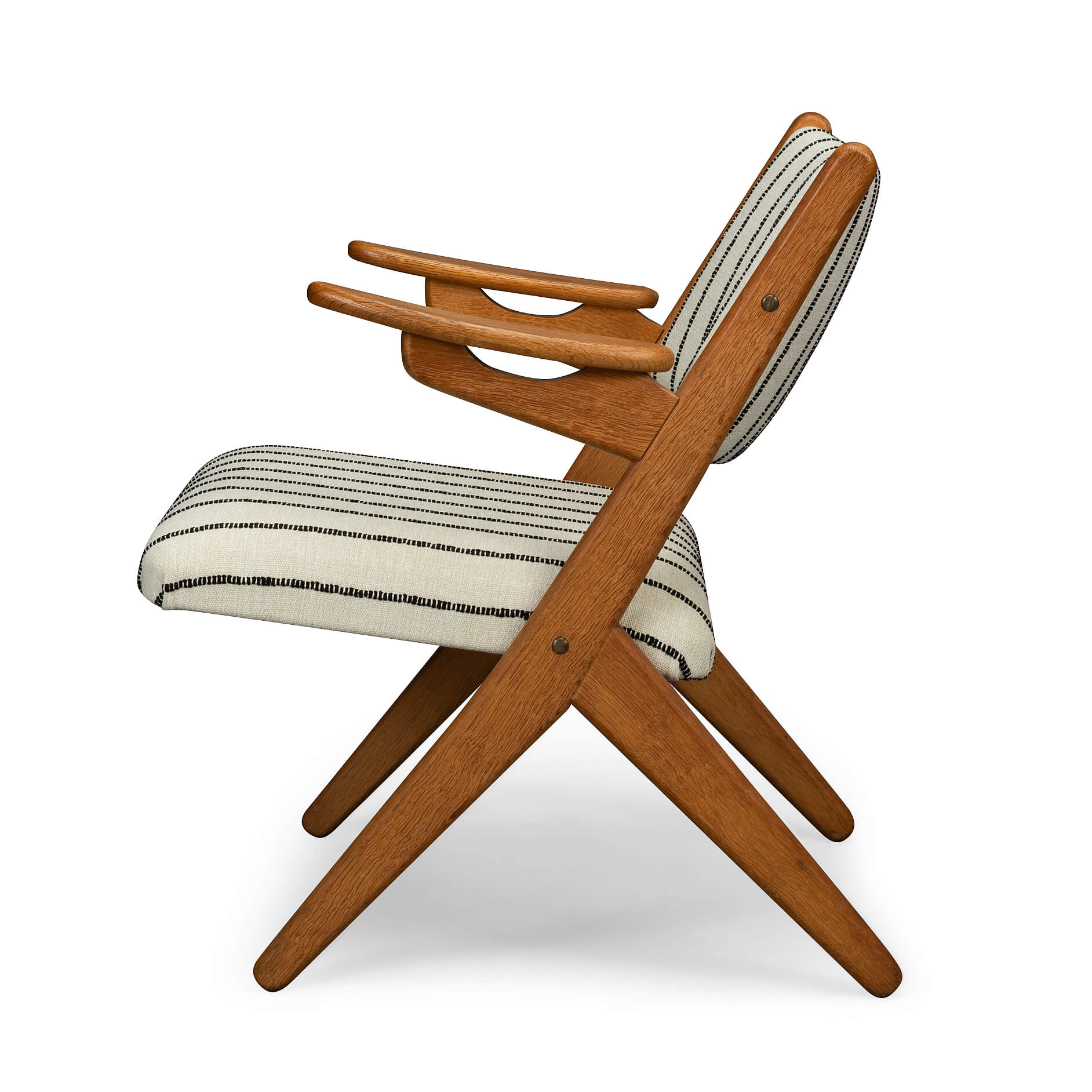 Deense design fauteuil van Arne Hovmand Olsen. De kussens zijn volledig vervangen en de gekozen stof (100% Polyolefin) is VANO Tanger No. 402.