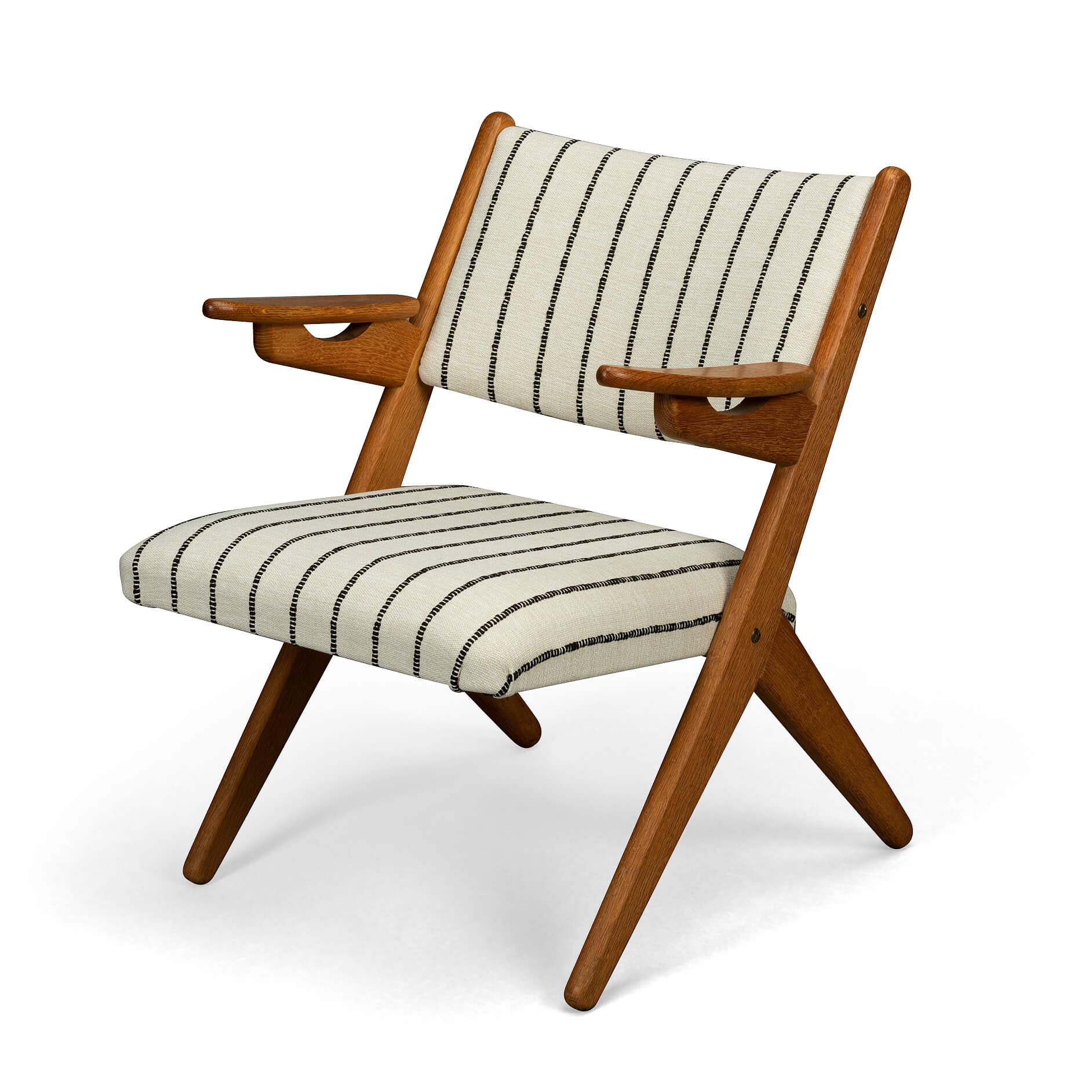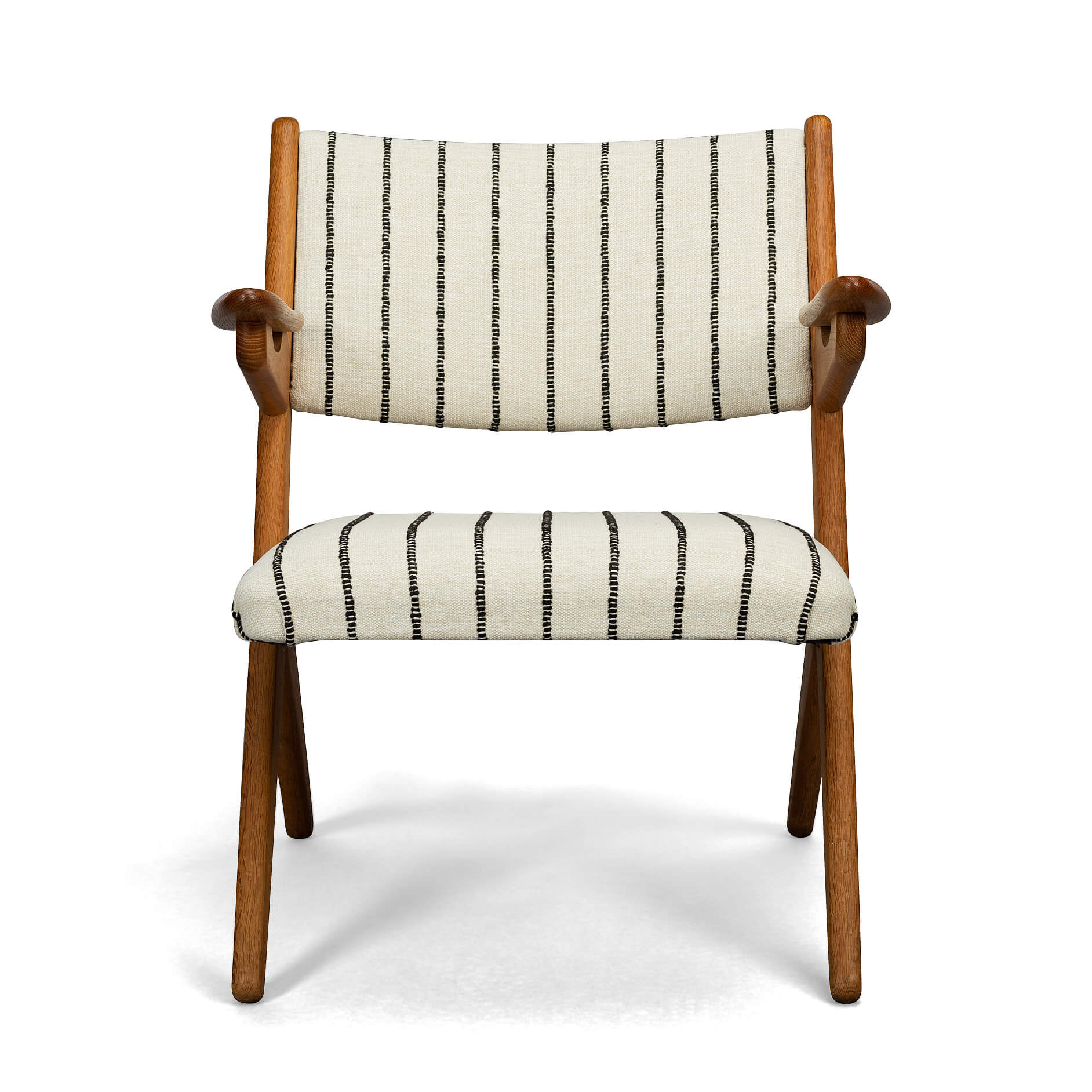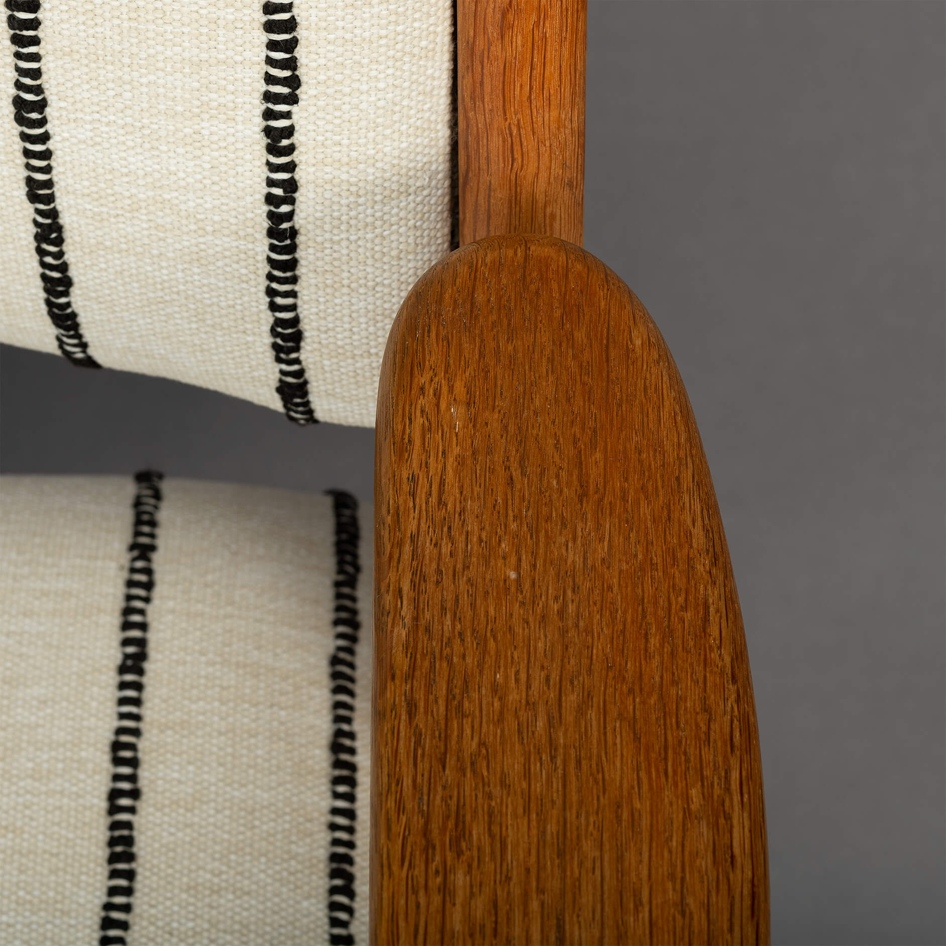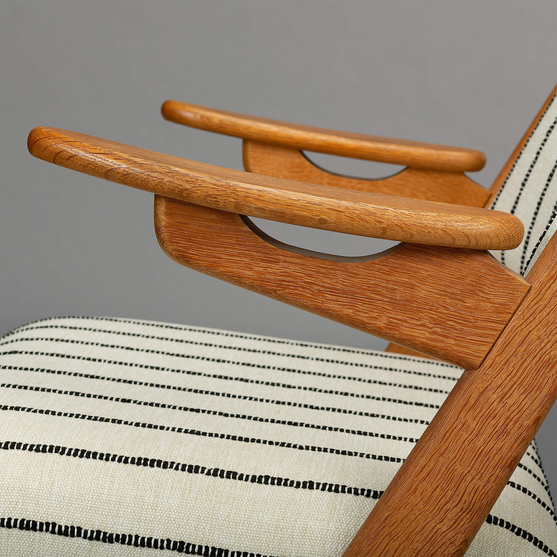 Deense design fauteuil van Arne Hovmand Olsen. De kussens zijn volledig vervangen en de gekozen stof (100% Polyolefin) is VANO Tanger No. 402.