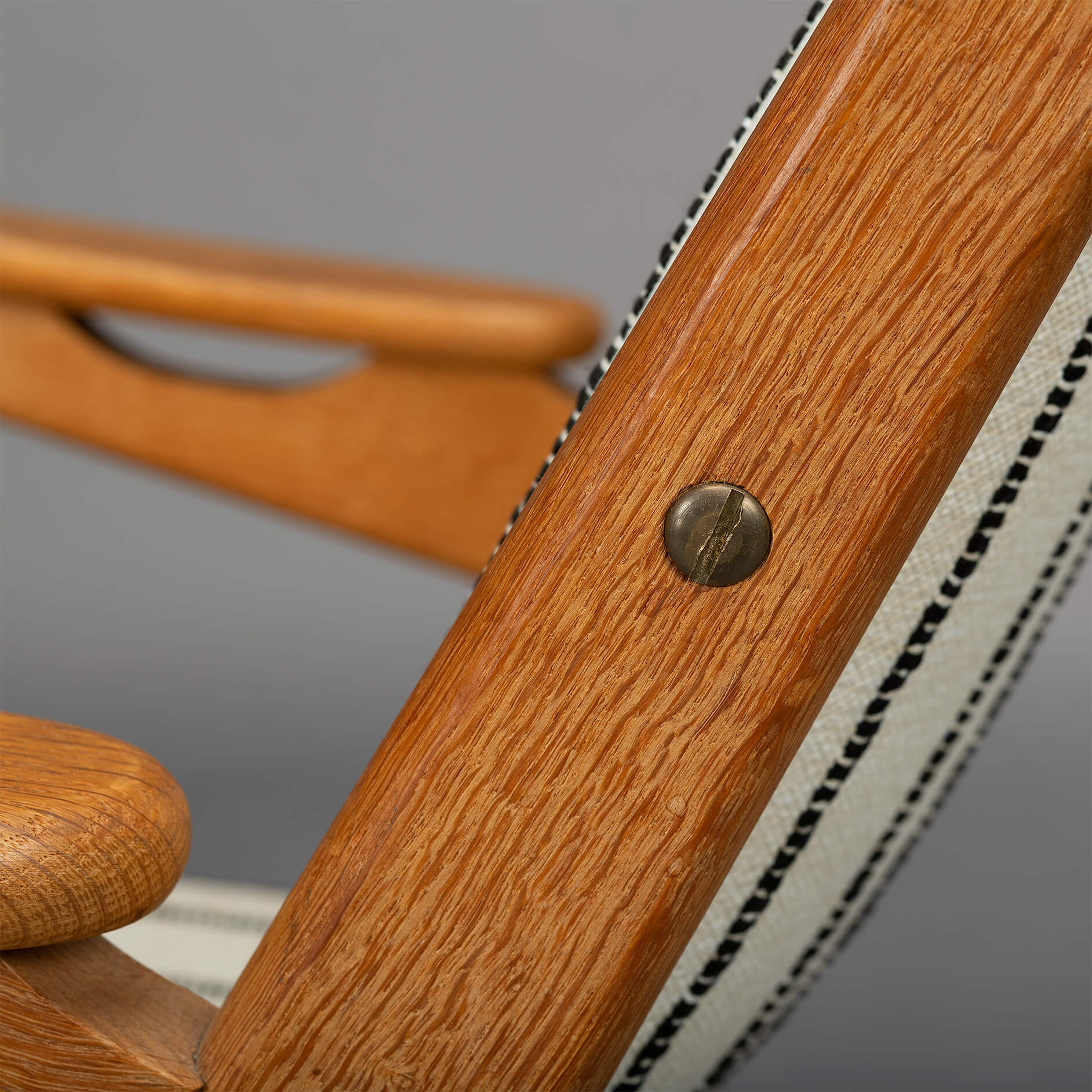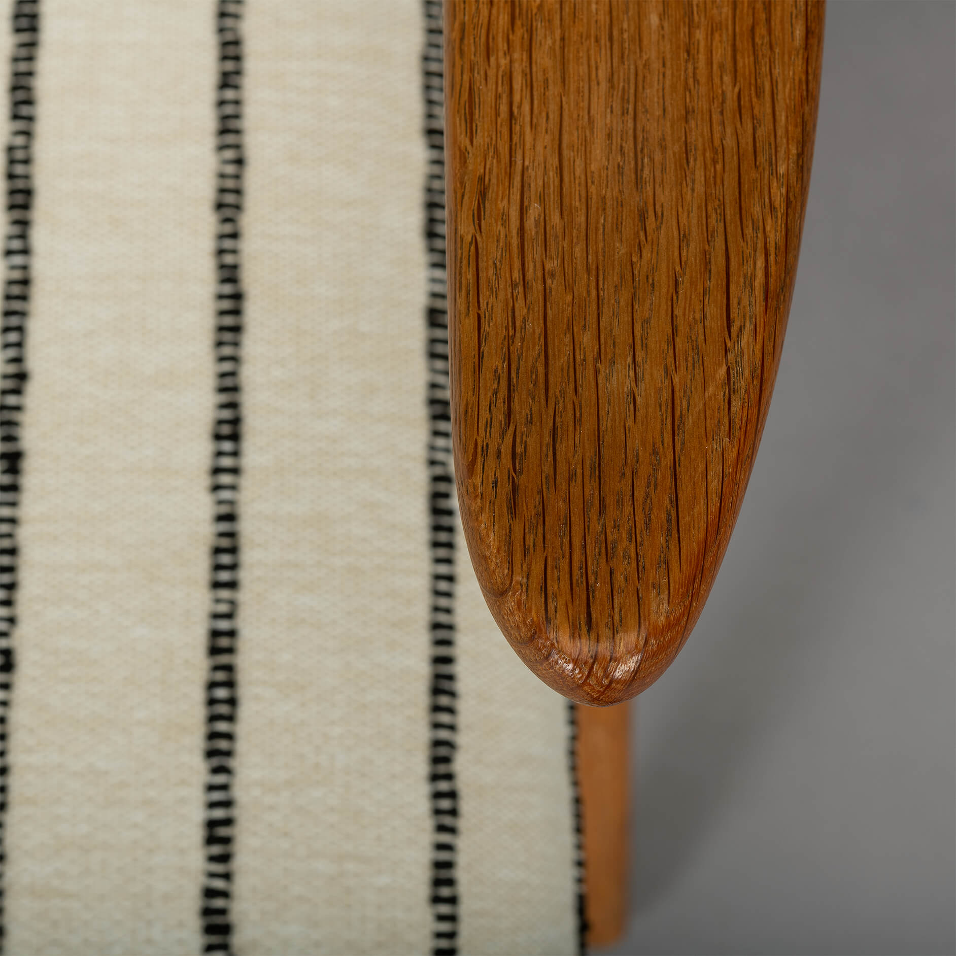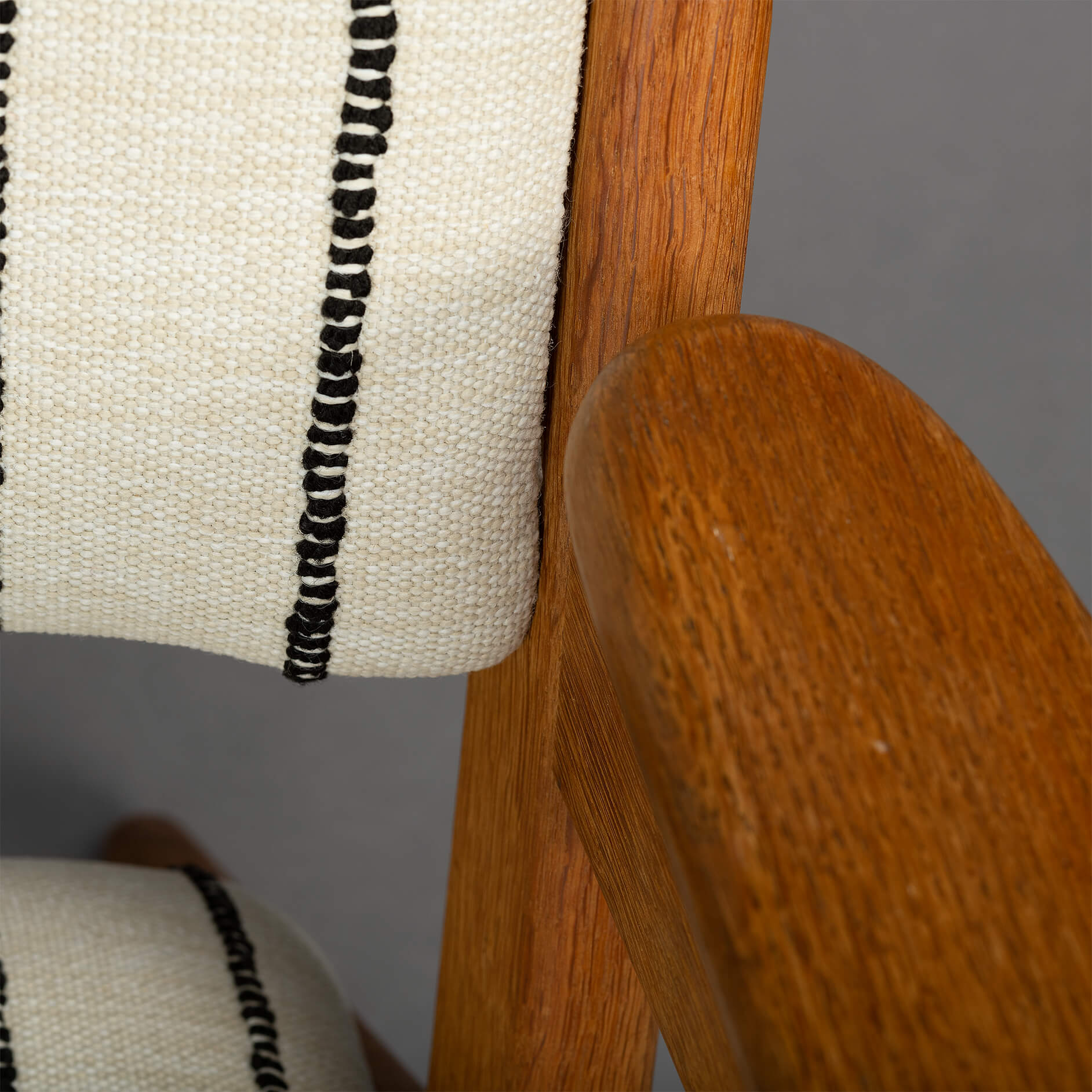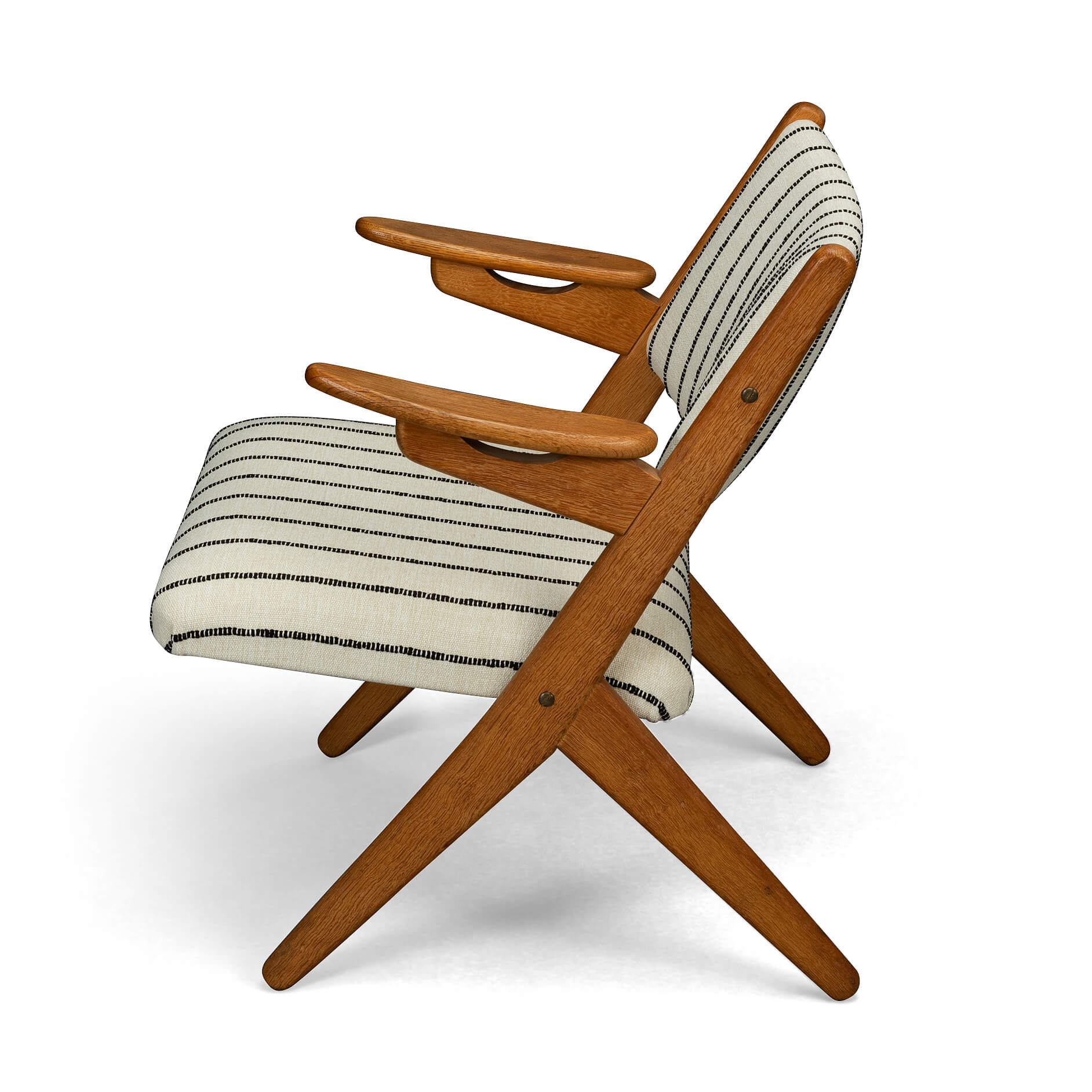 Deense design fauteuil van Arne Hovmand Olsen. De kussens zijn volledig vervangen en de gekozen stof (100% Polyolefin) is VANO Tanger No. 402.